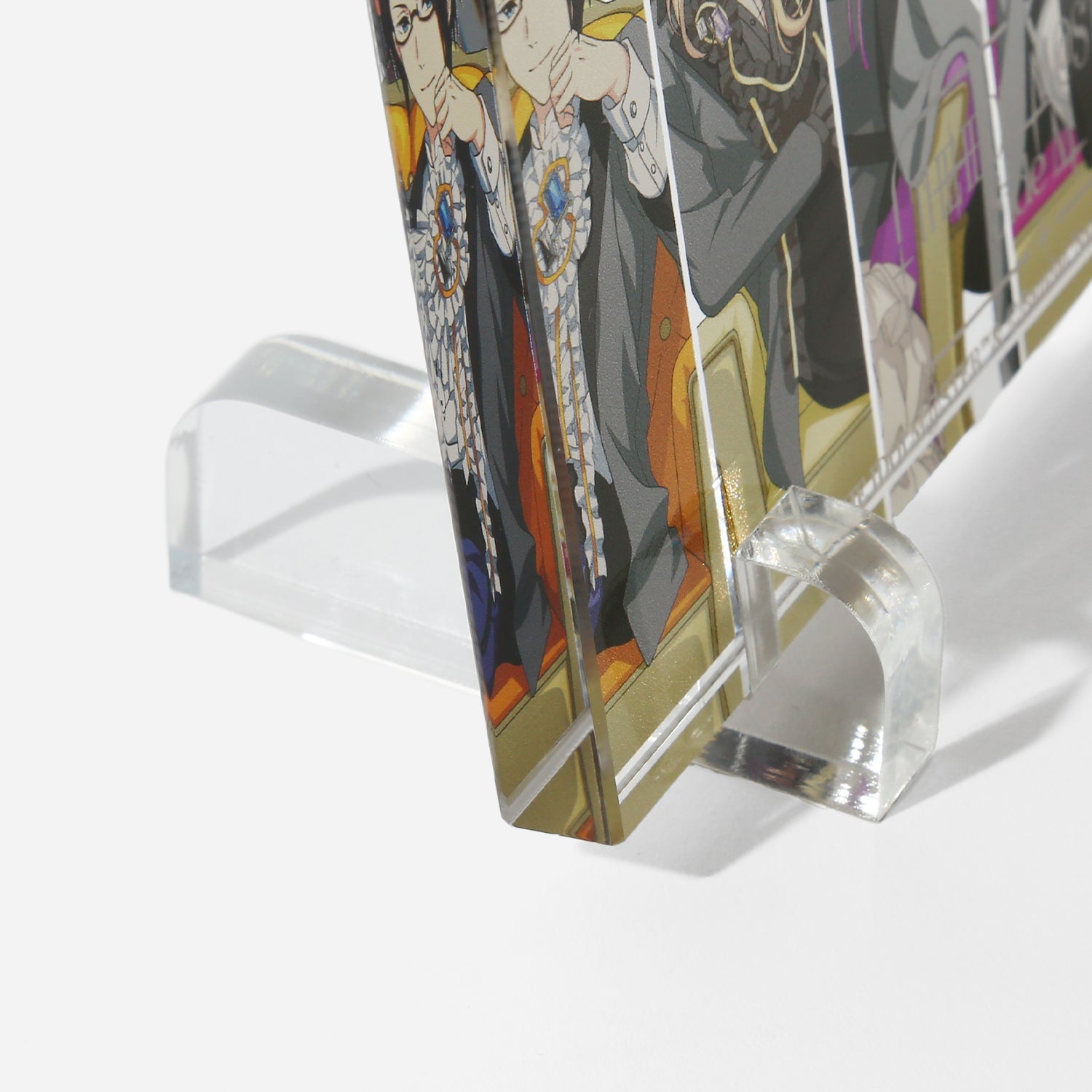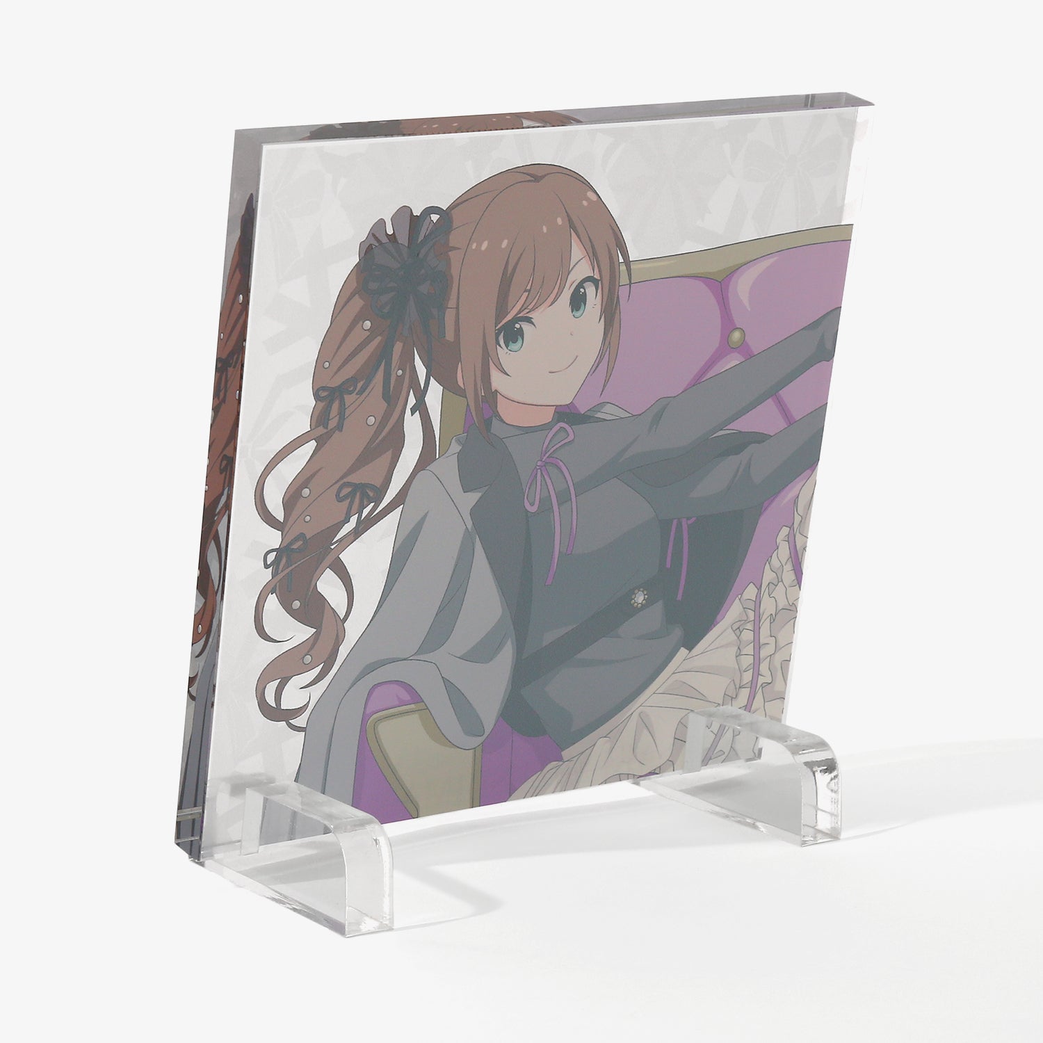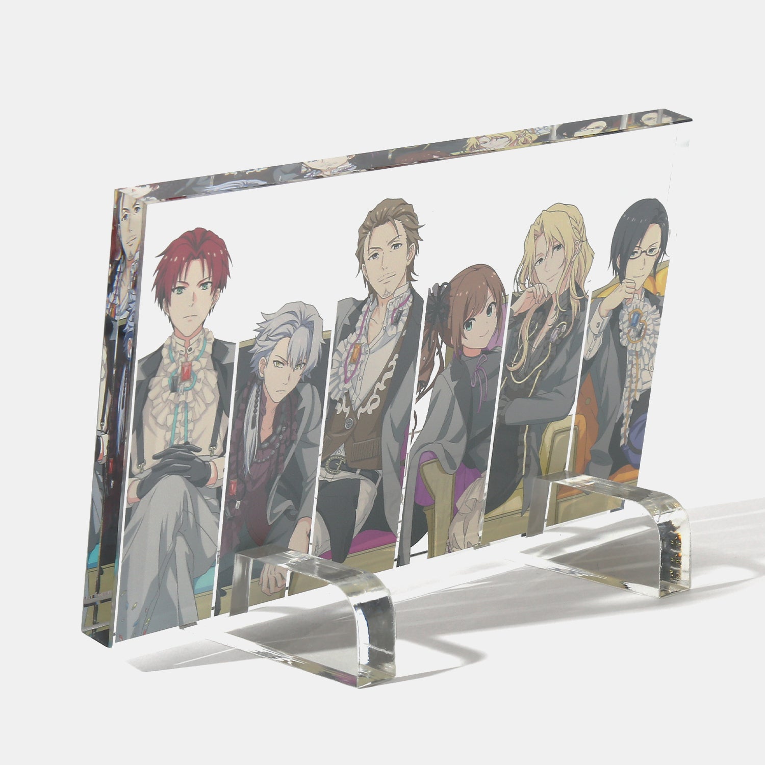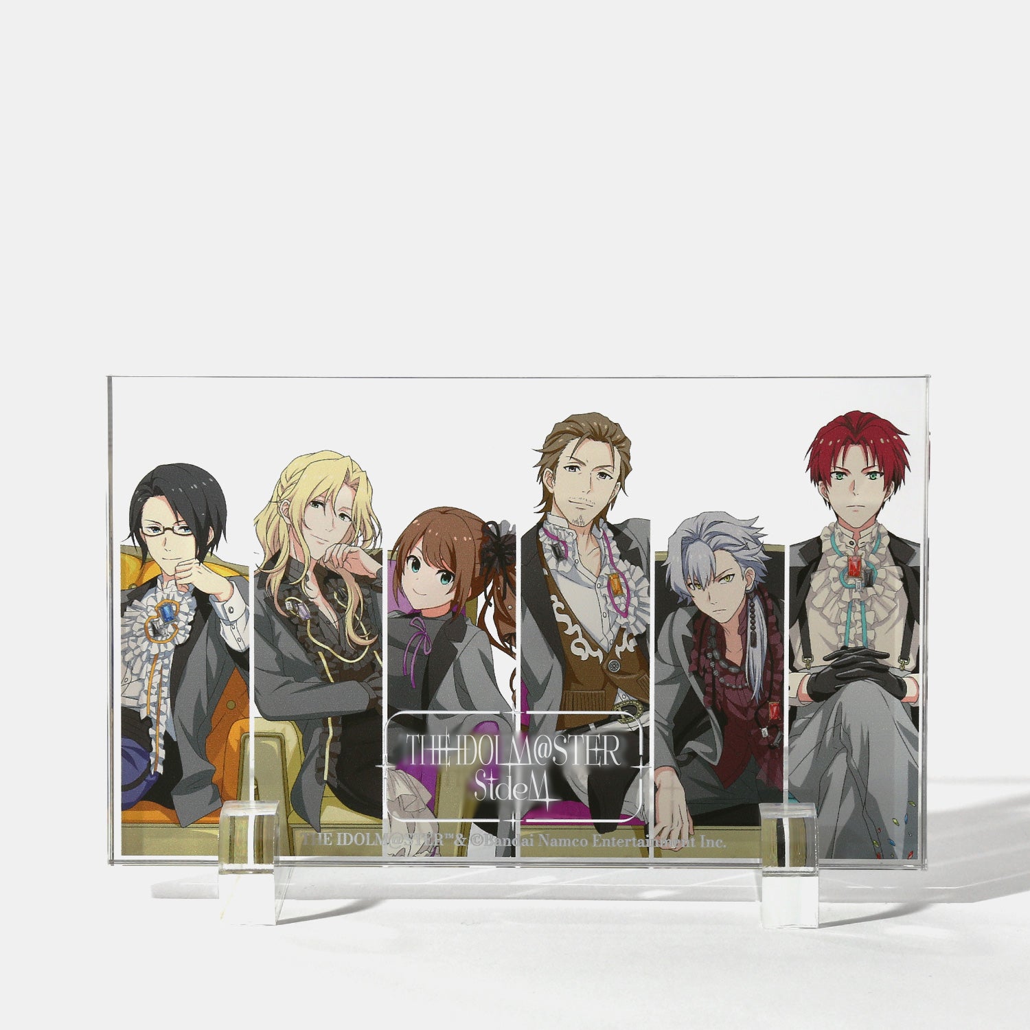 描き下ろしビジュアルを使用したアクリルブロック。背景には各アイドルからインスパイアされたオリジナルデザインをあしらい、世界観を表現しました。デスクや棚に飾るだけで、日常の空間にさりげなく彩りと遊び心を添えるアイテムです。