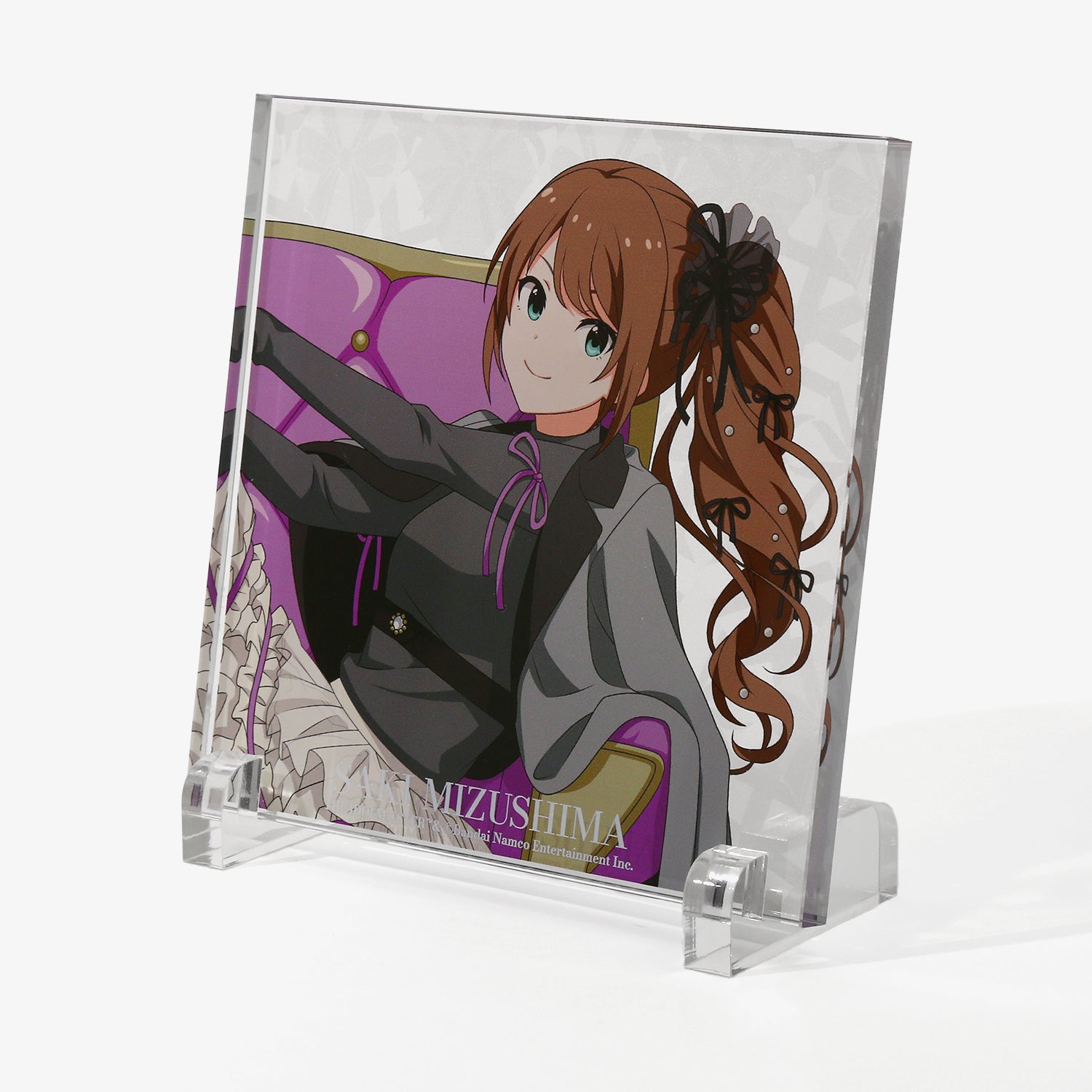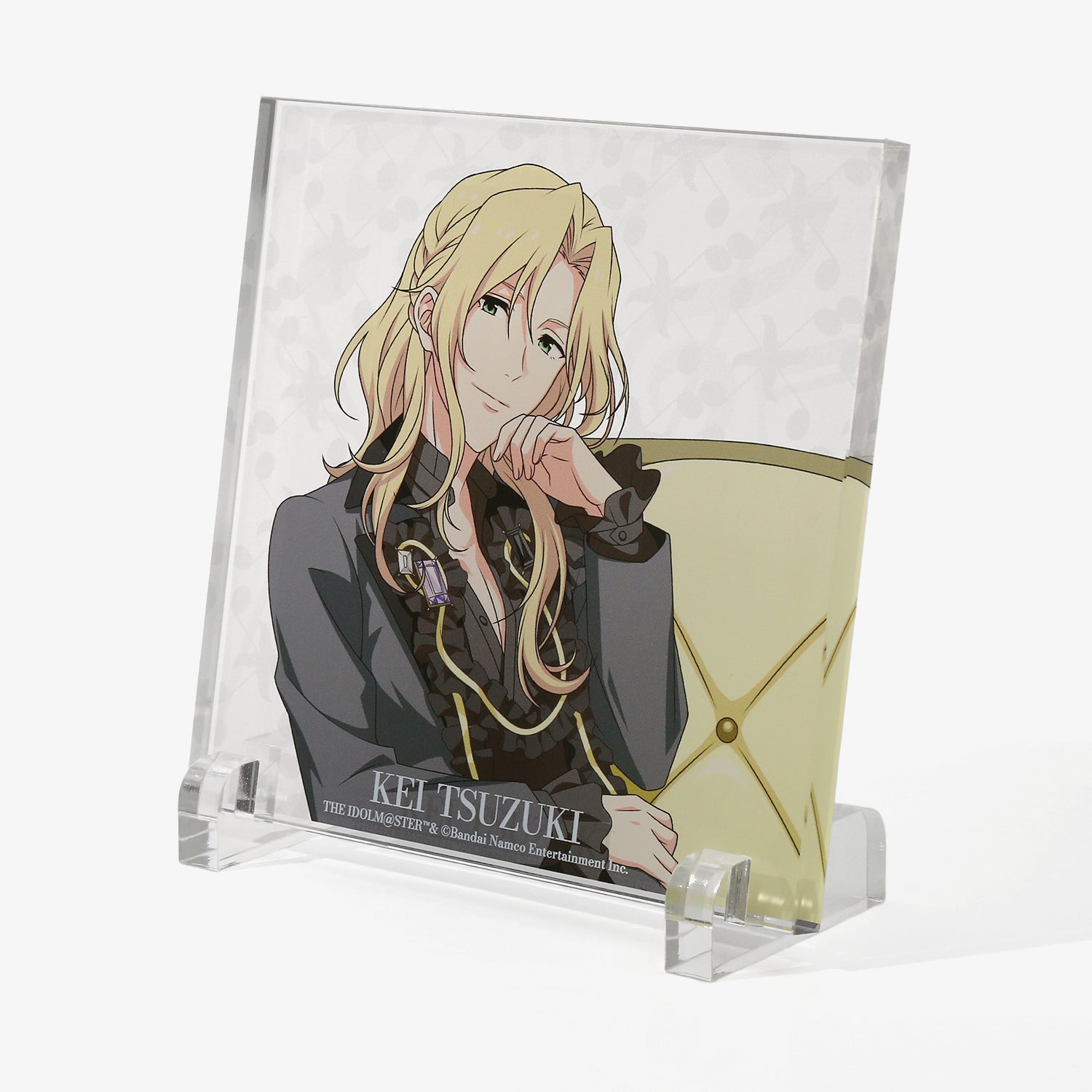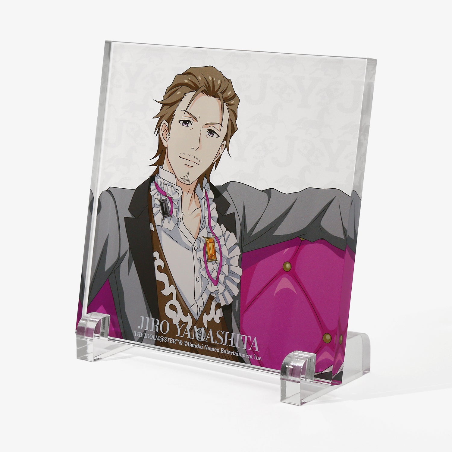 描き下ろしビジュアルを使用したアクリルブロック。背景には各アイドルからインスパイアされたオリジナルデザインをあしらい、世界観を表現しました。デスクや棚に飾るだけで、日常の空間にさりげなく彩りと遊び心を添えるアイテムです。