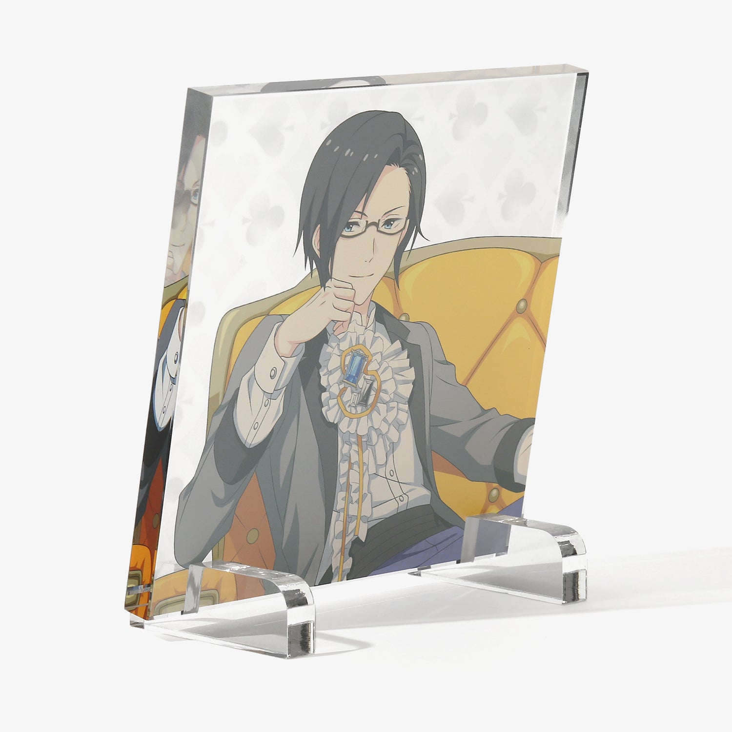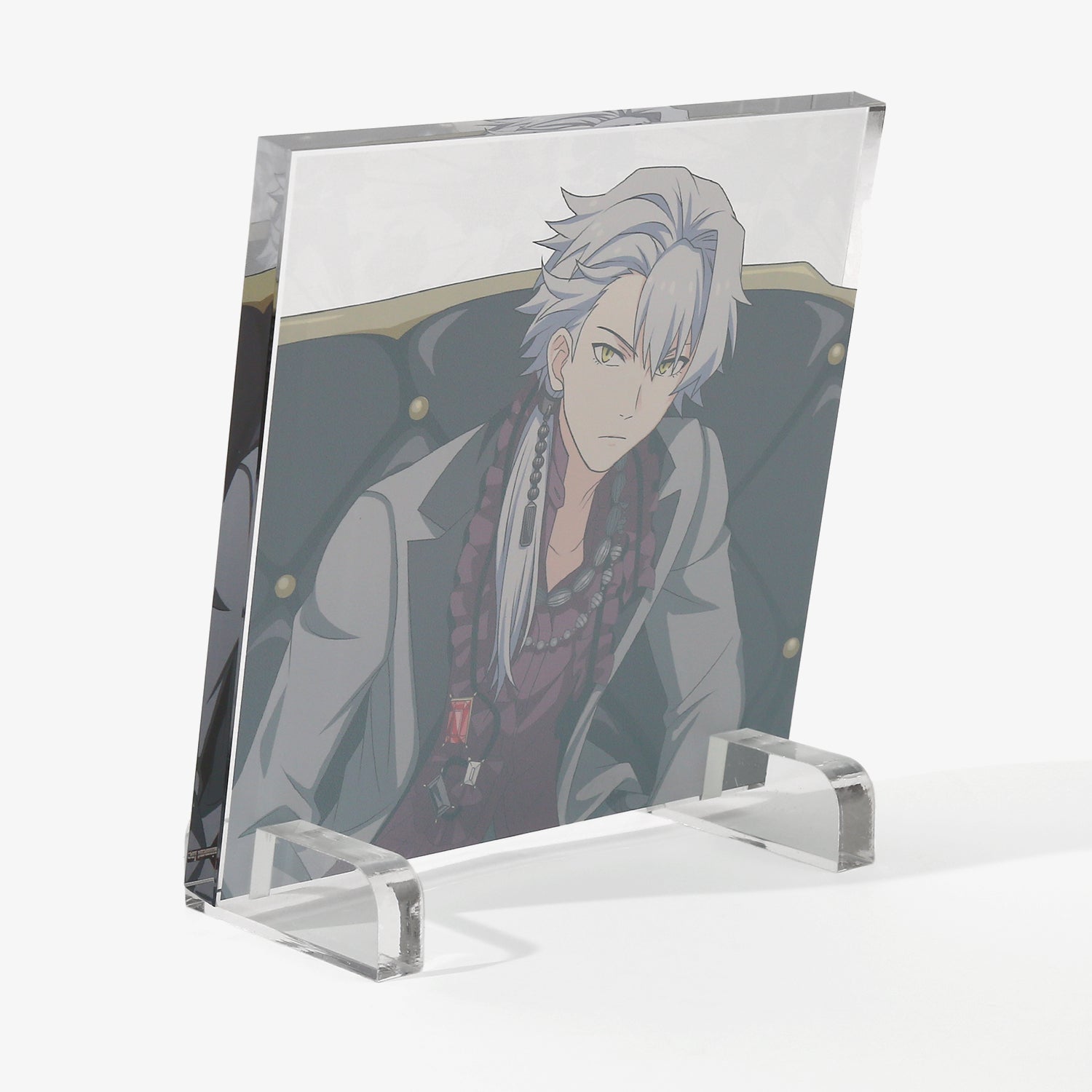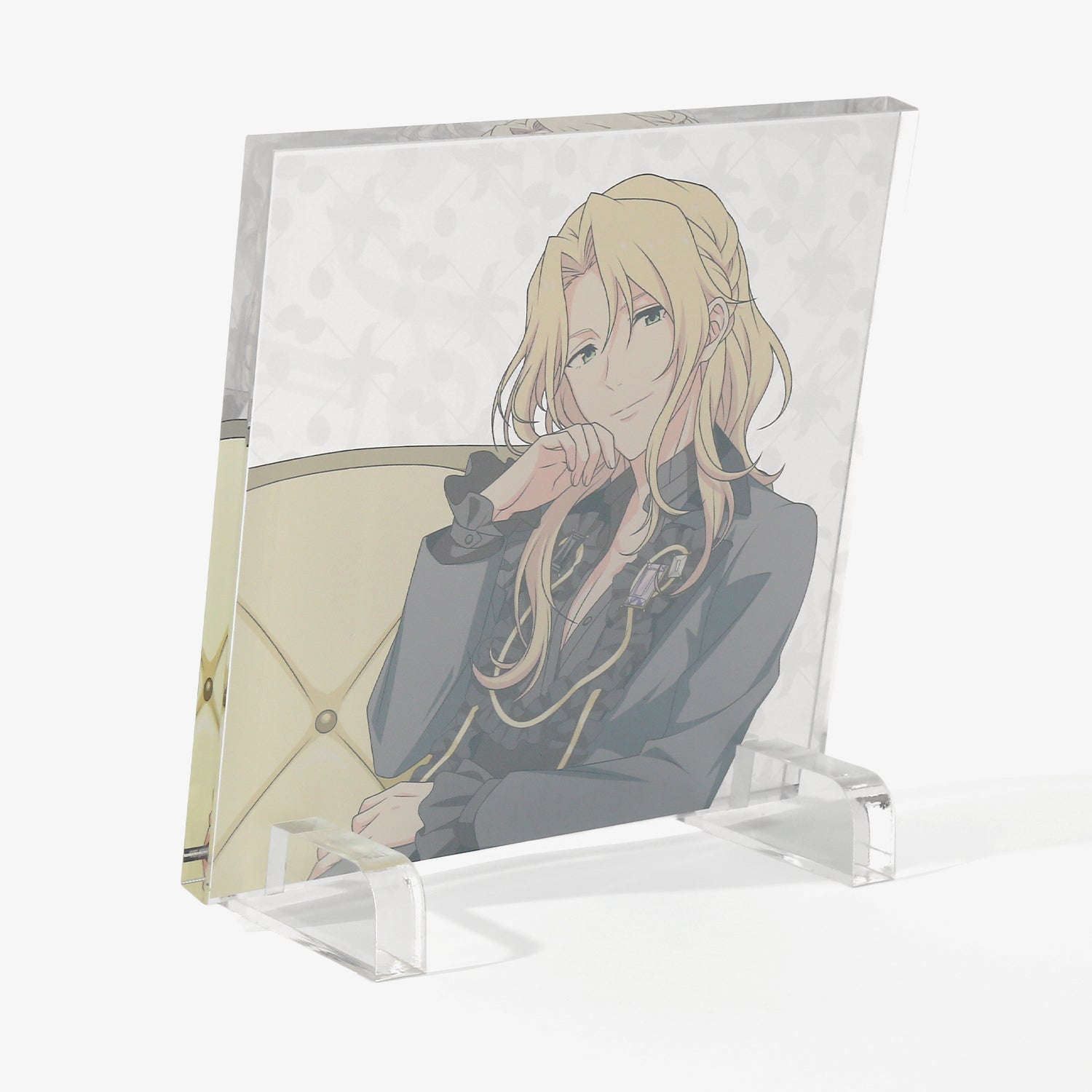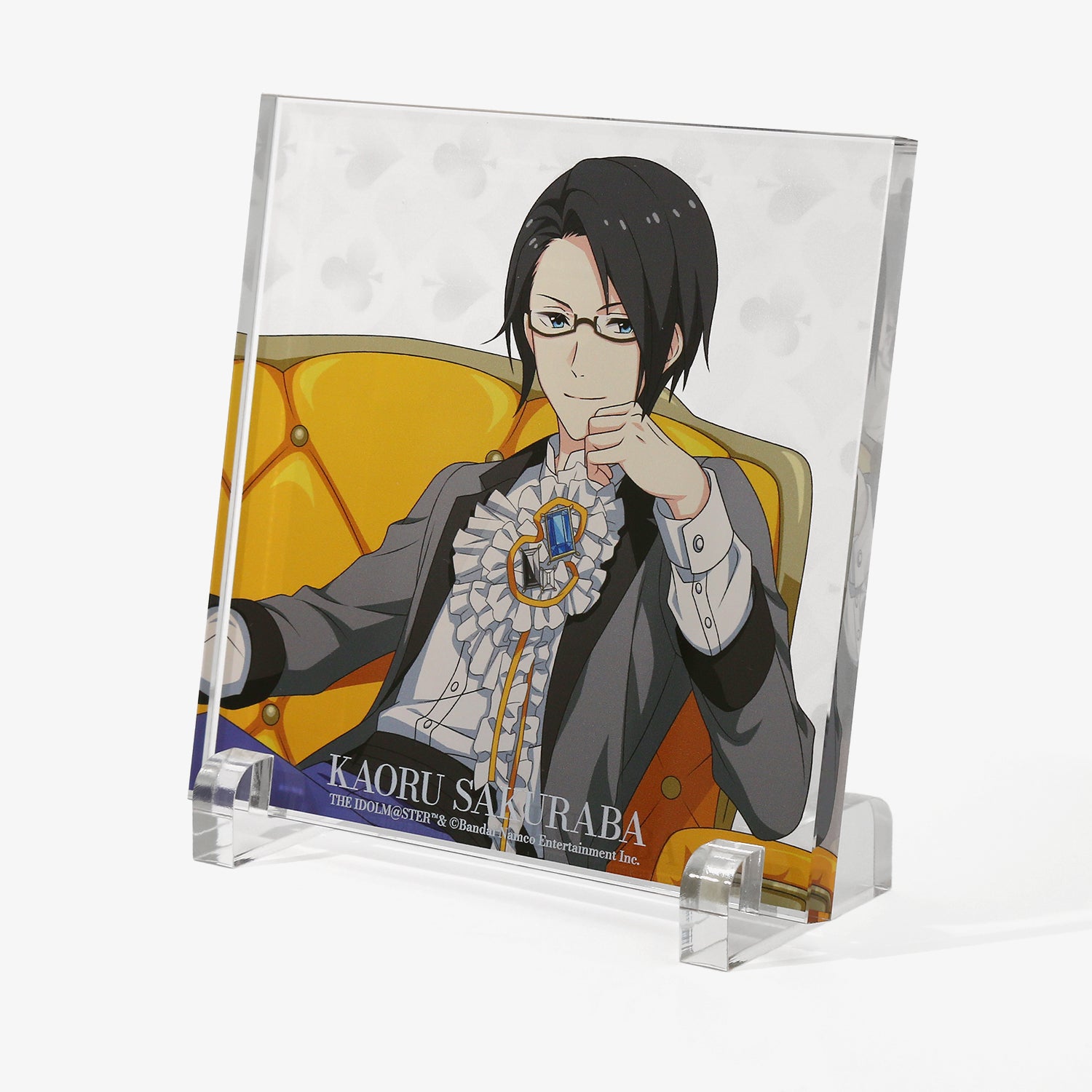 描き下ろしビジュアルを使用したアクリルブロック。背景には各アイドルからインスパイアされたオリジナルデザインをあしらい、世界観を表現しました。デスクや棚に飾るだけで、日常の空間にさりげなく彩りと遊び心を添えるアイテムです。