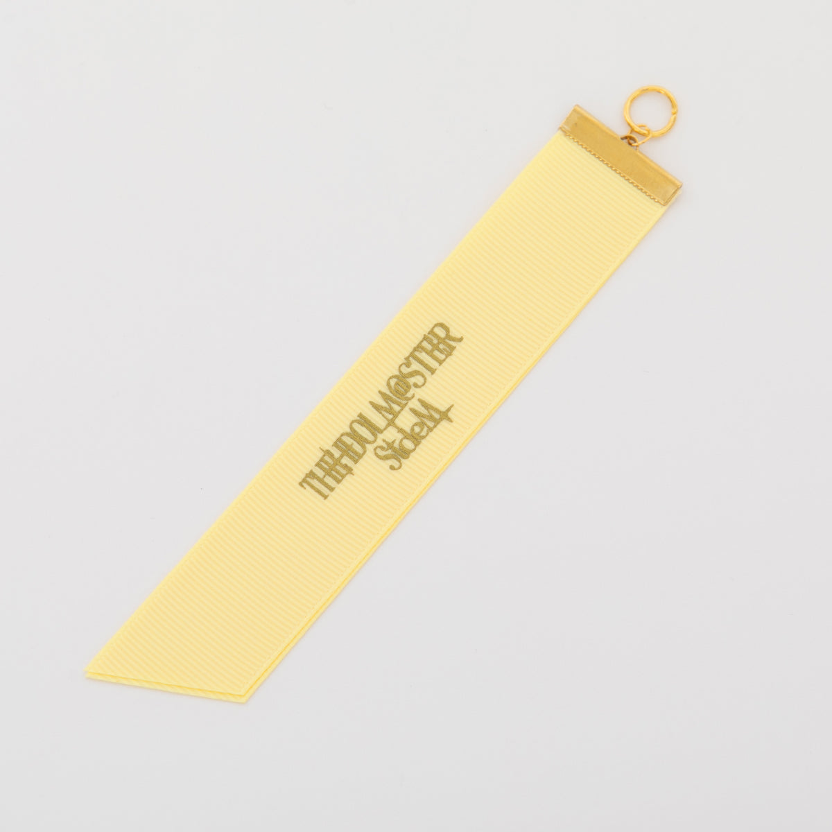 描き下ろしビジュアルの衣装をモチーフにしたリボンパーツ。各アイドルのユニットカラーを取り入れ、華やかで存在感のあるデザインに仕上げました。店頭限定のスペシャルアイテムとして、バッグやポーチに付けてお楽しみください。
