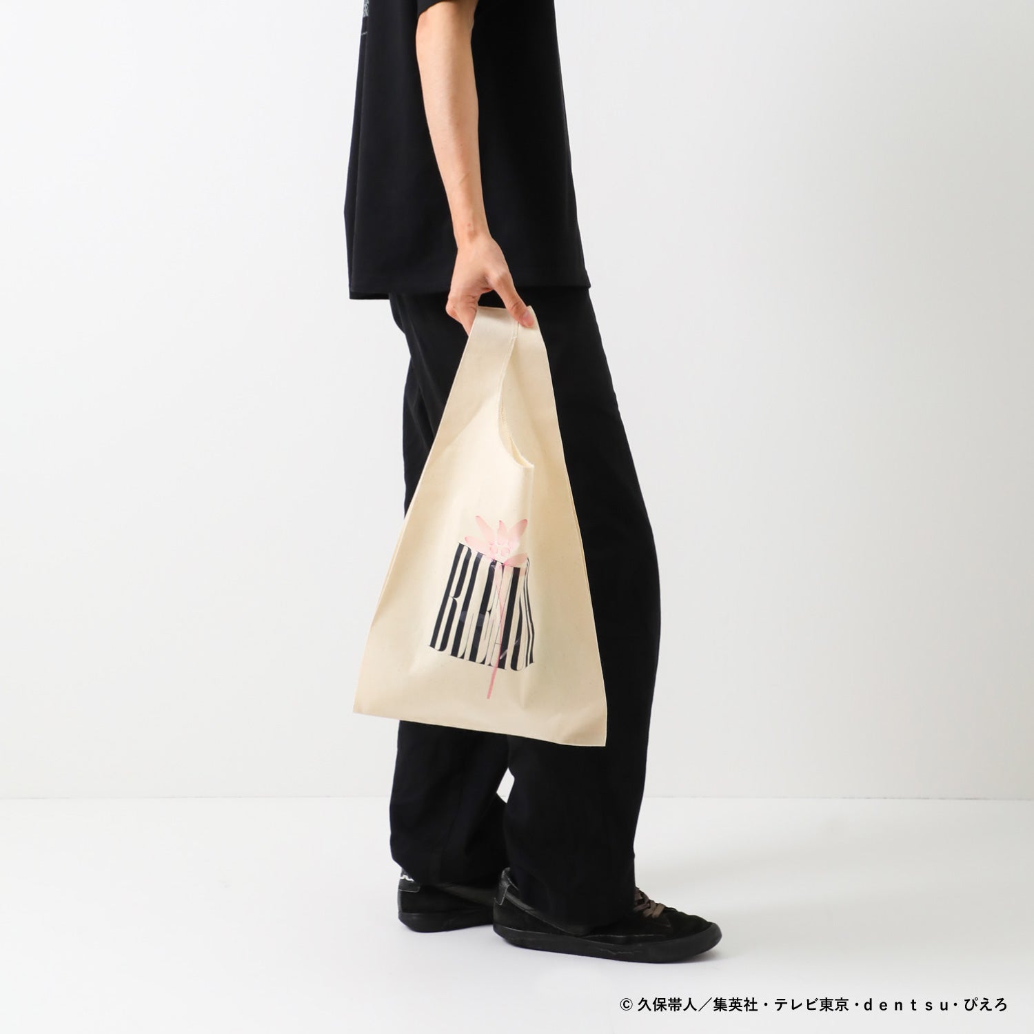 石田雨竜を象徴する花 エーデルワイスをグラフィカルに用いたコットン生地のマルシェバッグ。