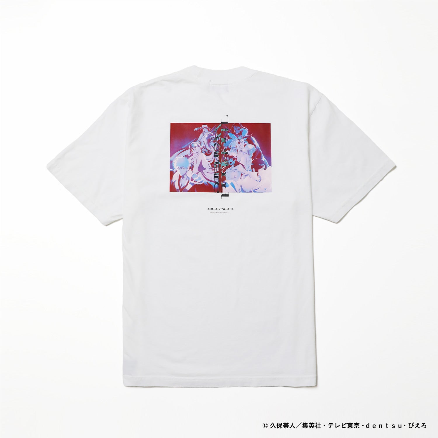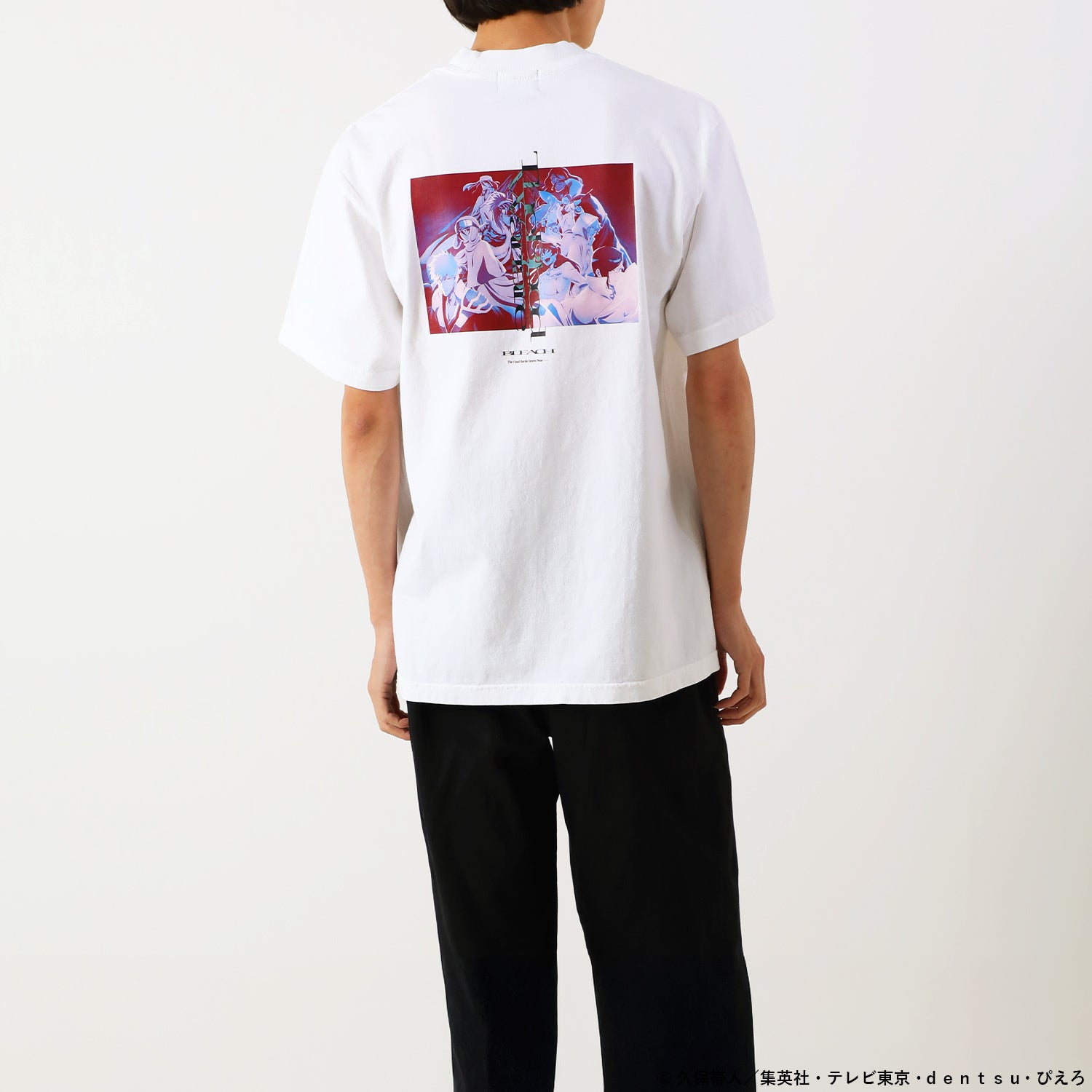 千年血戦篇のキービジュアルをバックに配したTシャツ。ヴィンテージライクな風合いに仕上げています。