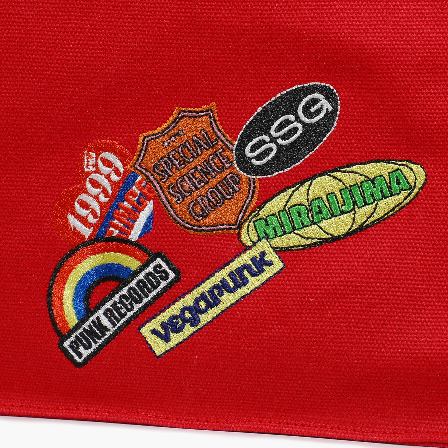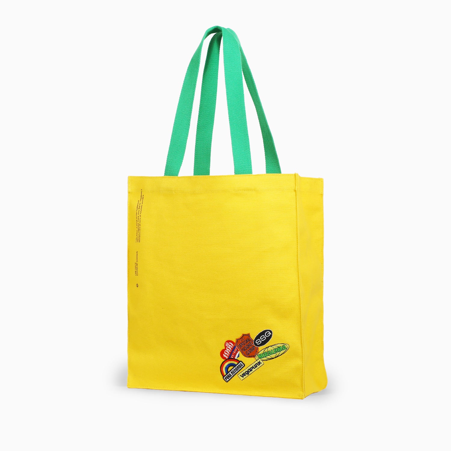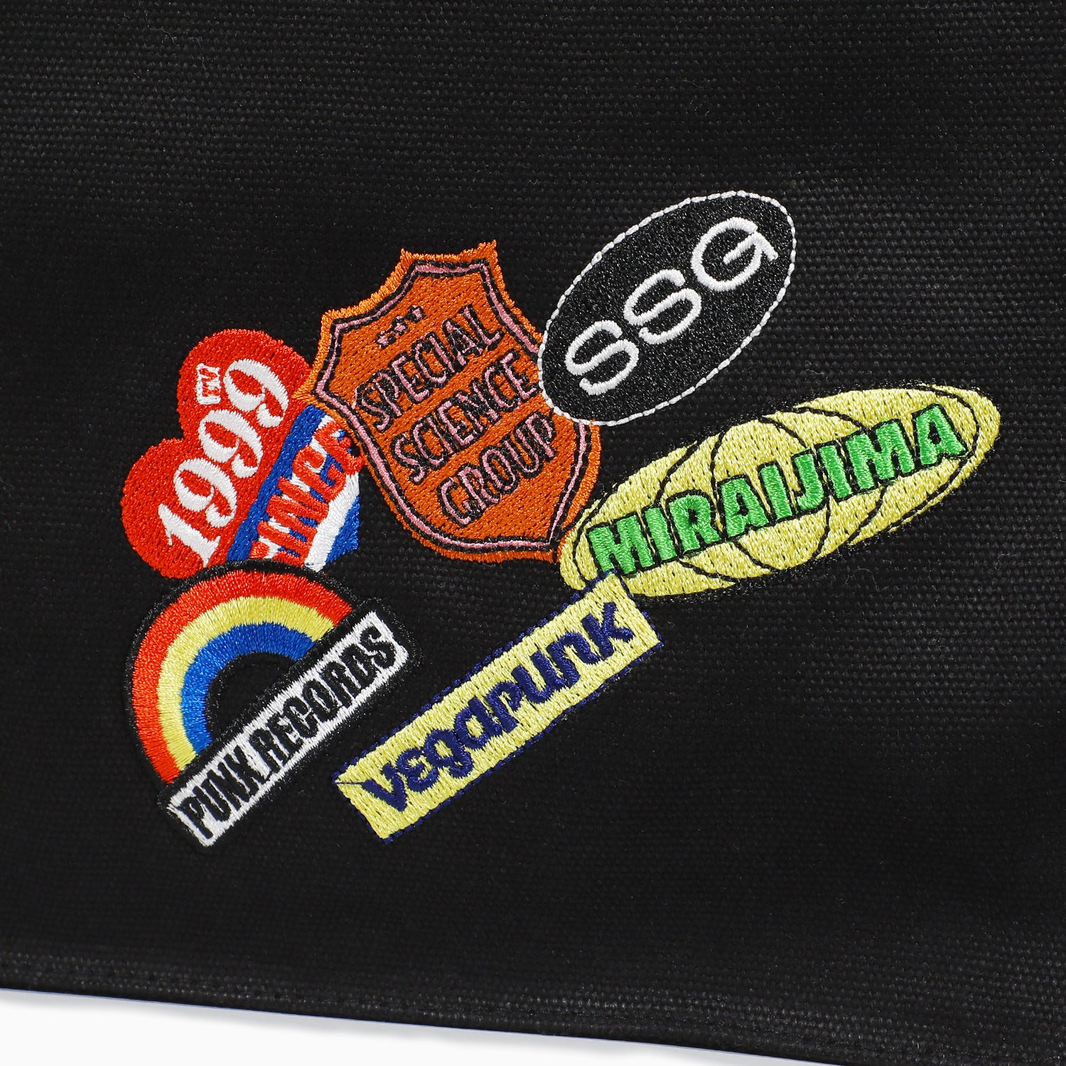 オリジナルデザインの刺繍を施したトートバッグ。厚手の生地を使用し、内装には便利なポケットも付属。