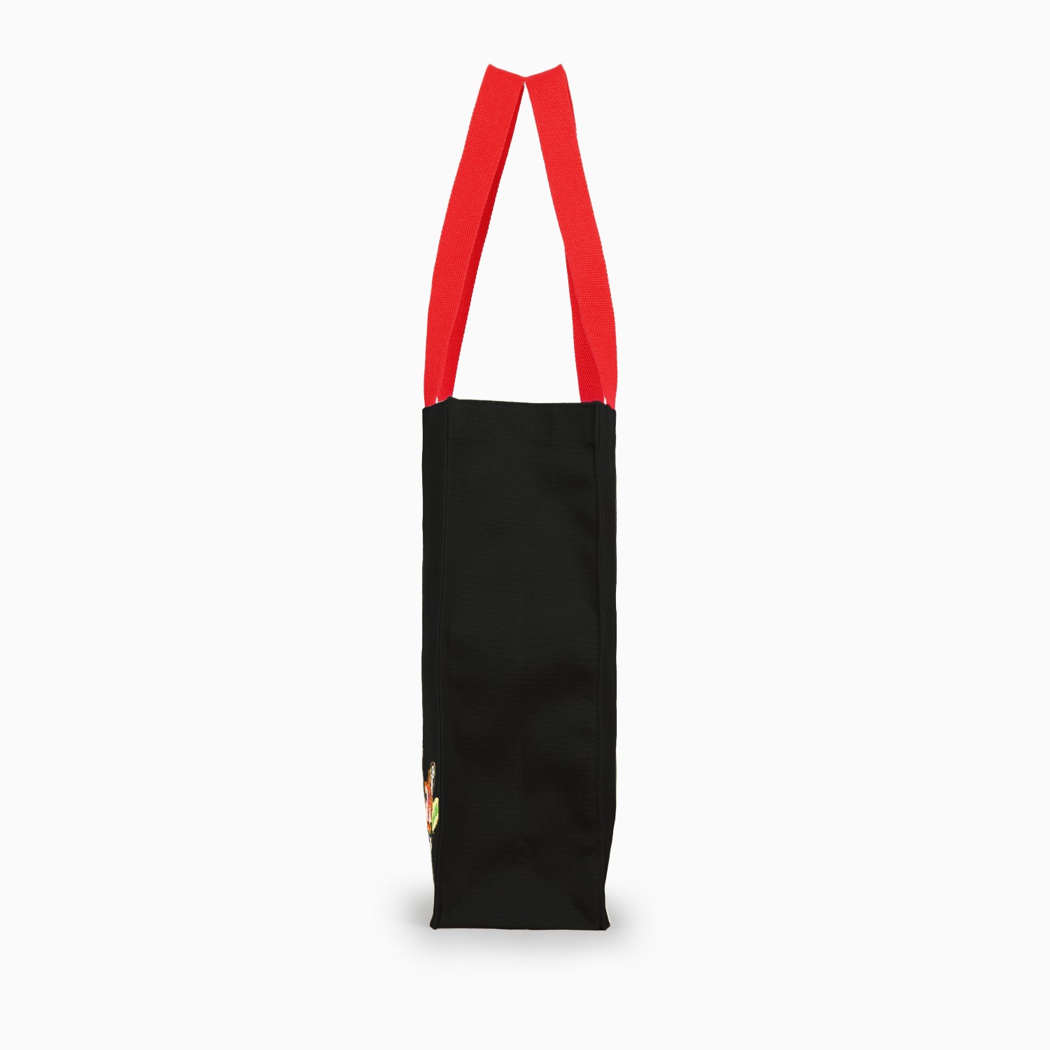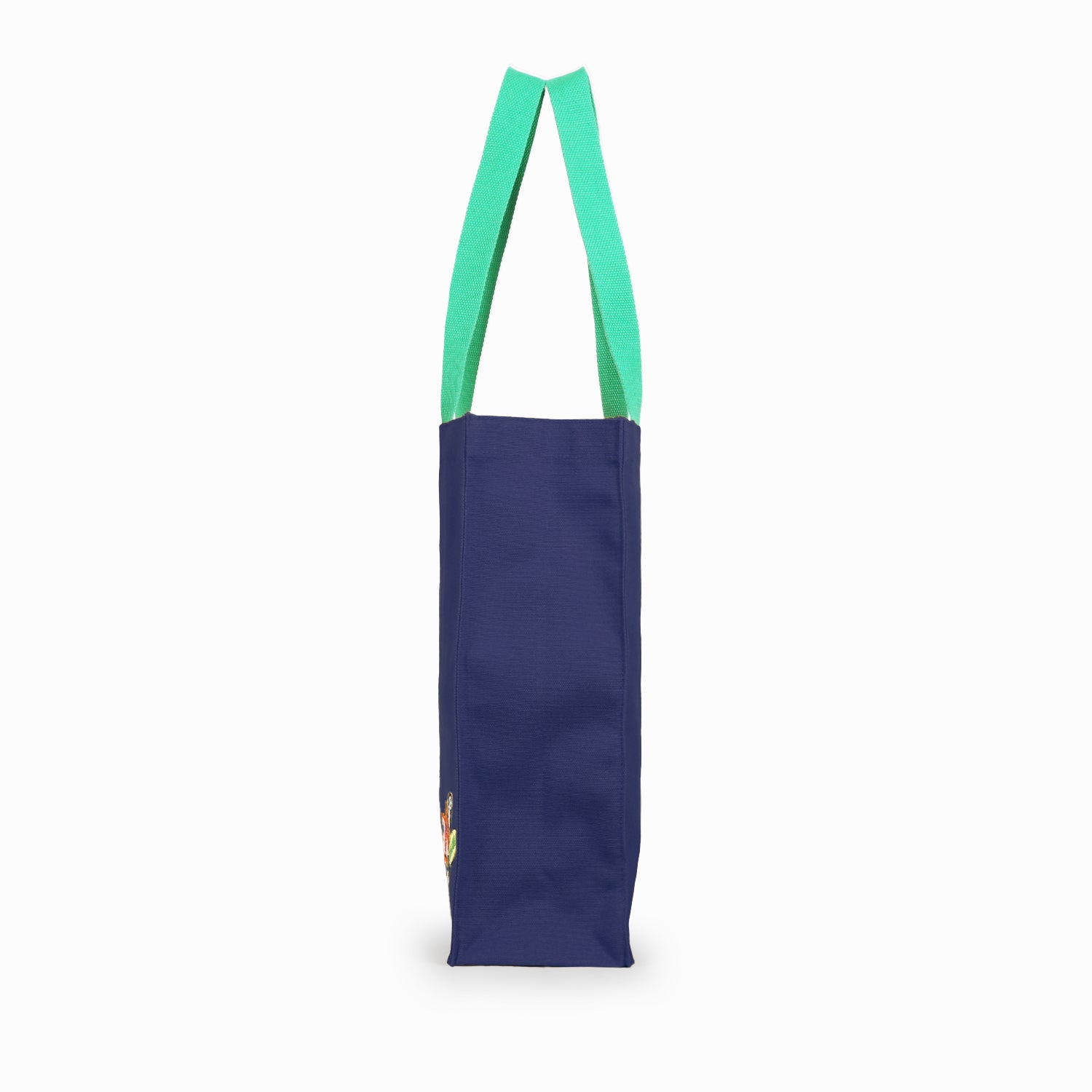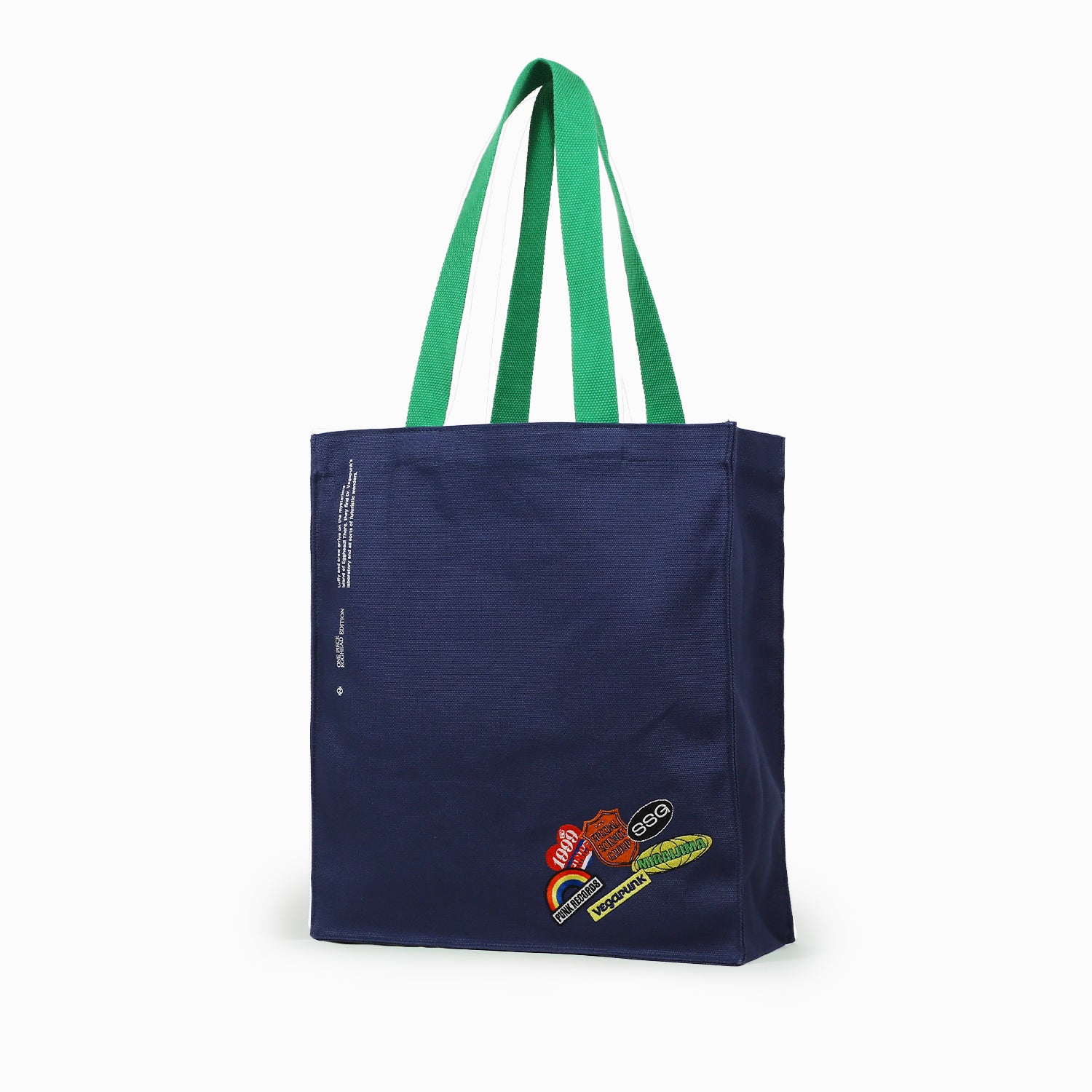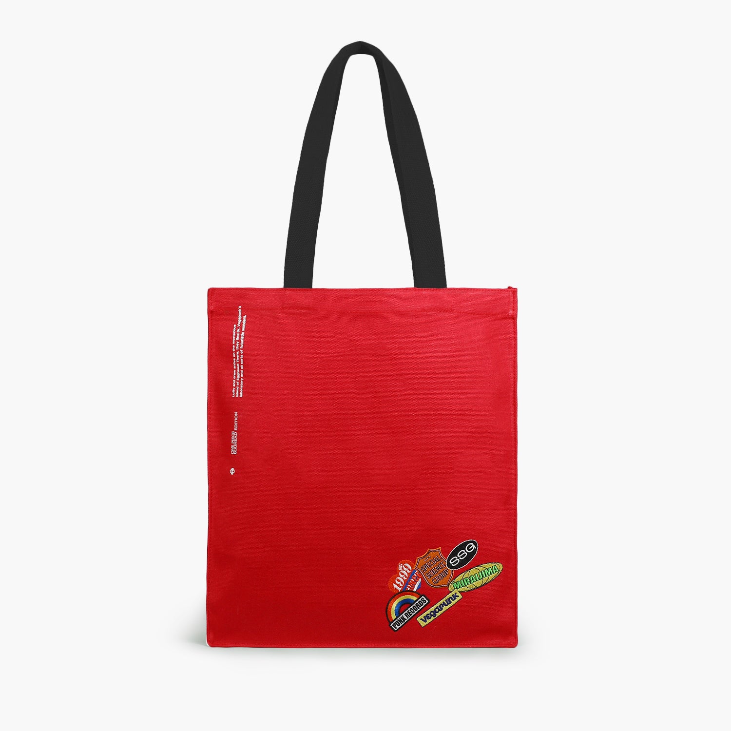 オリジナルデザインの刺繍を施したトートバッグ。厚手の生地を使用し、内装には便利なポケットも付属。