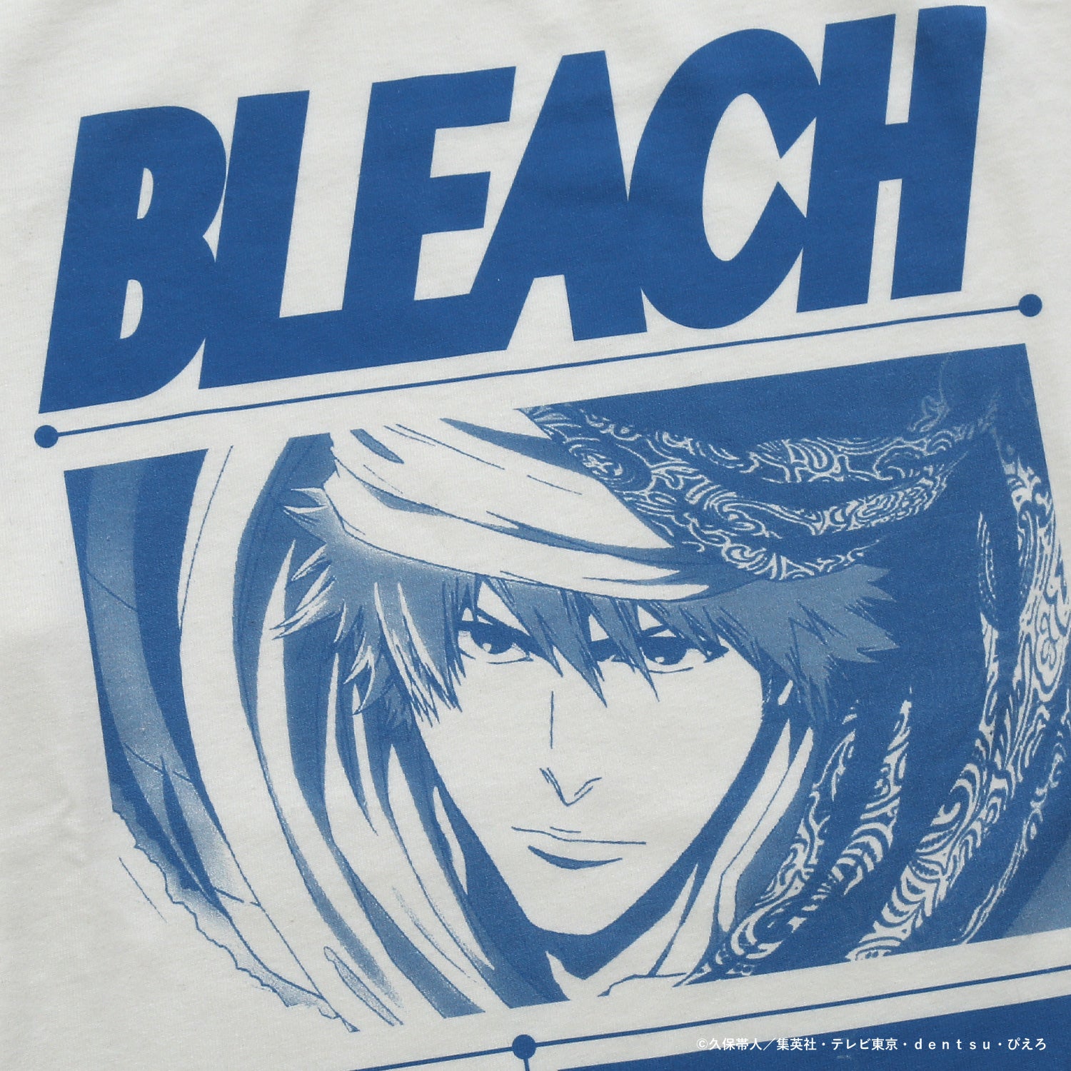 黒崎一護のビジュアルをフロントに配したTシャツ。2階調のグラフィックで表現し、モチーフをさりげなく落とし込んだデザインです。 オリジナルボディを使用し、シルエットやパターンにもこだわりました。
