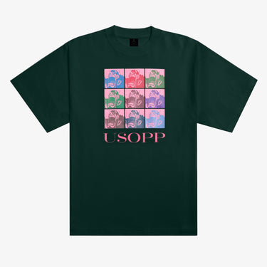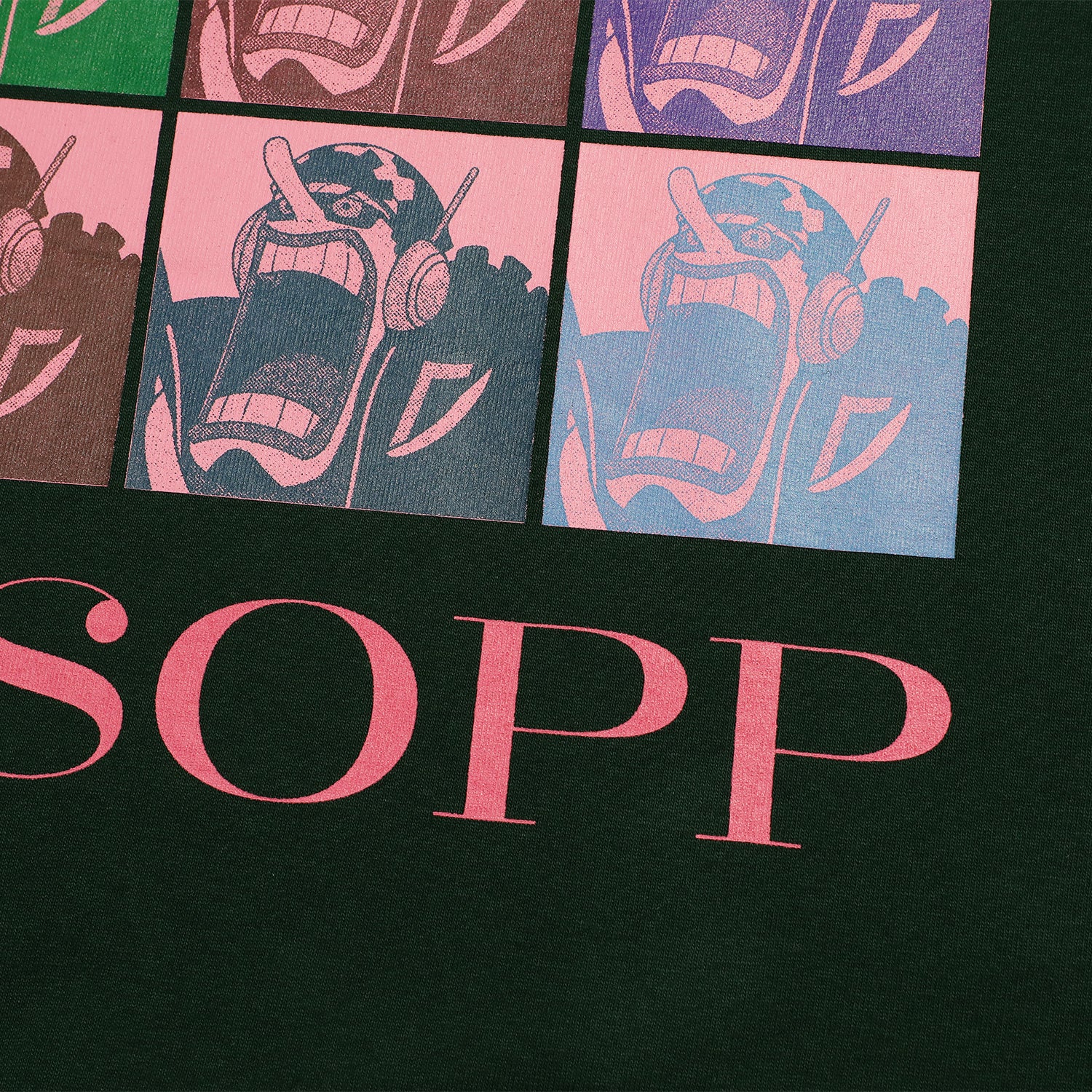 連続でプリントされたデザインが特徴的なウソップTシャツ。独自のグラフィックが、ウソップの冒険心とユーモアを反映したデザイン。
