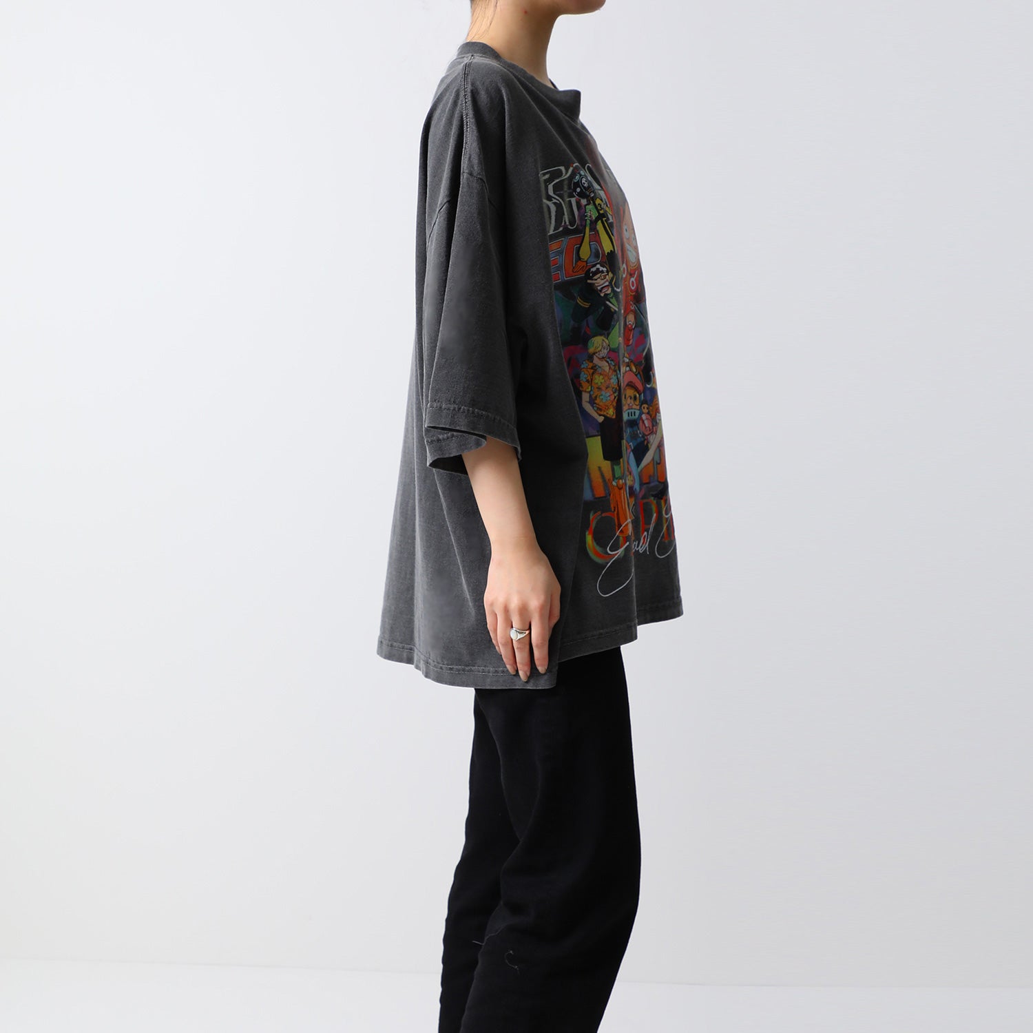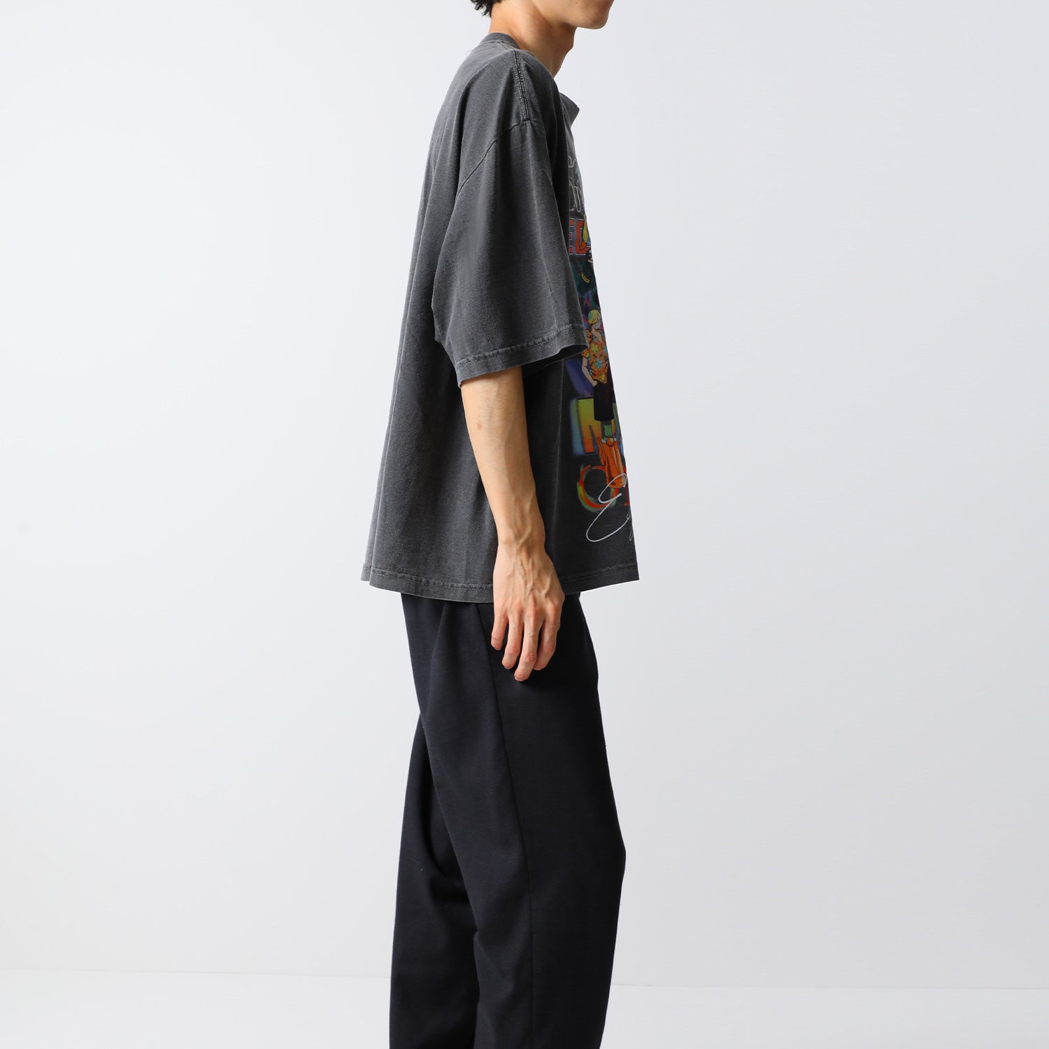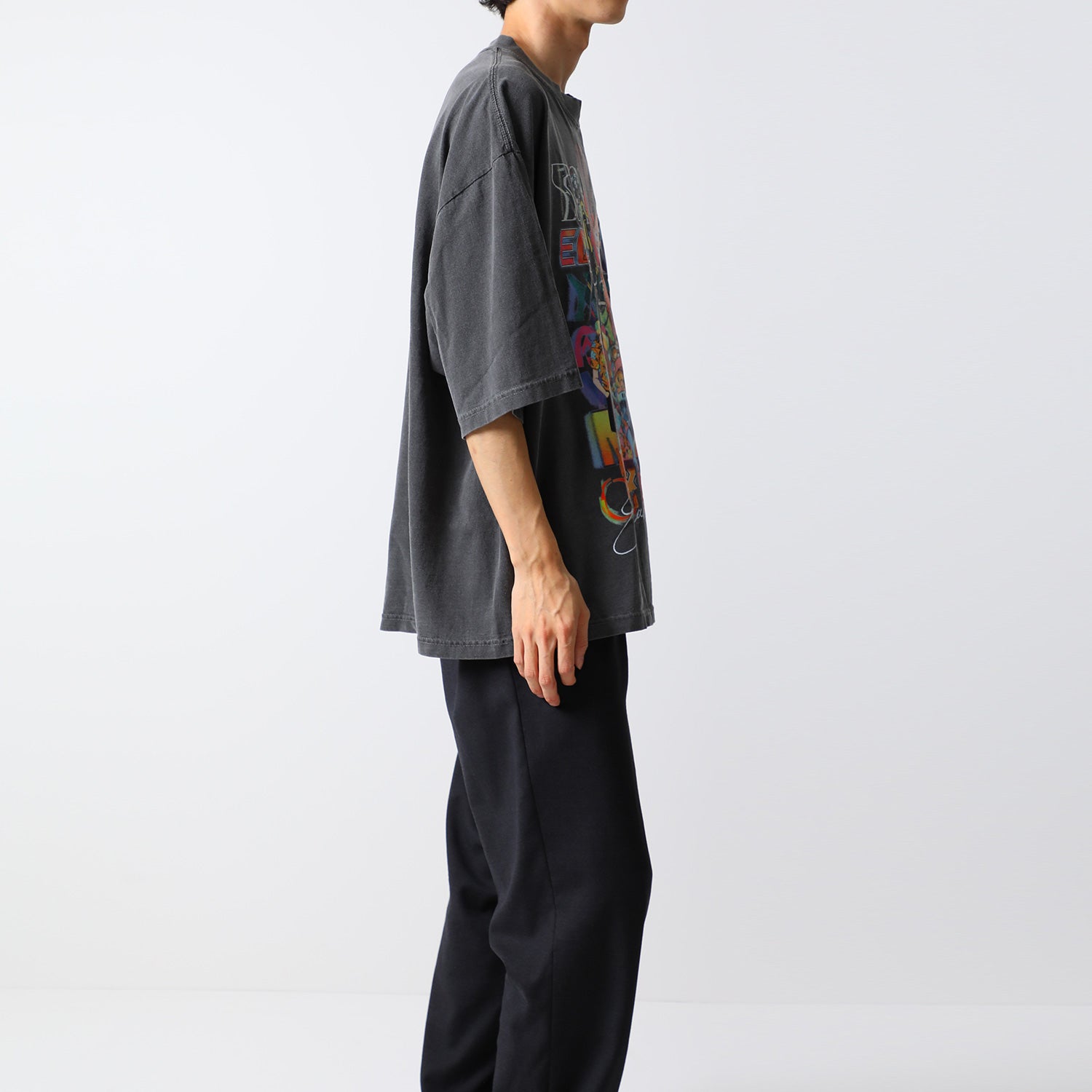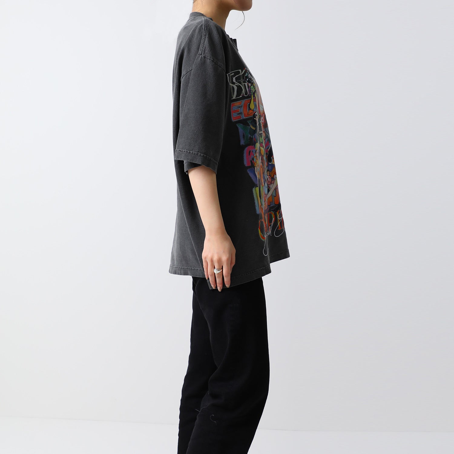 レトロフューチャーなデザインがフロントに大胆にあしらわれたオリジナルデザインのTシャツ。