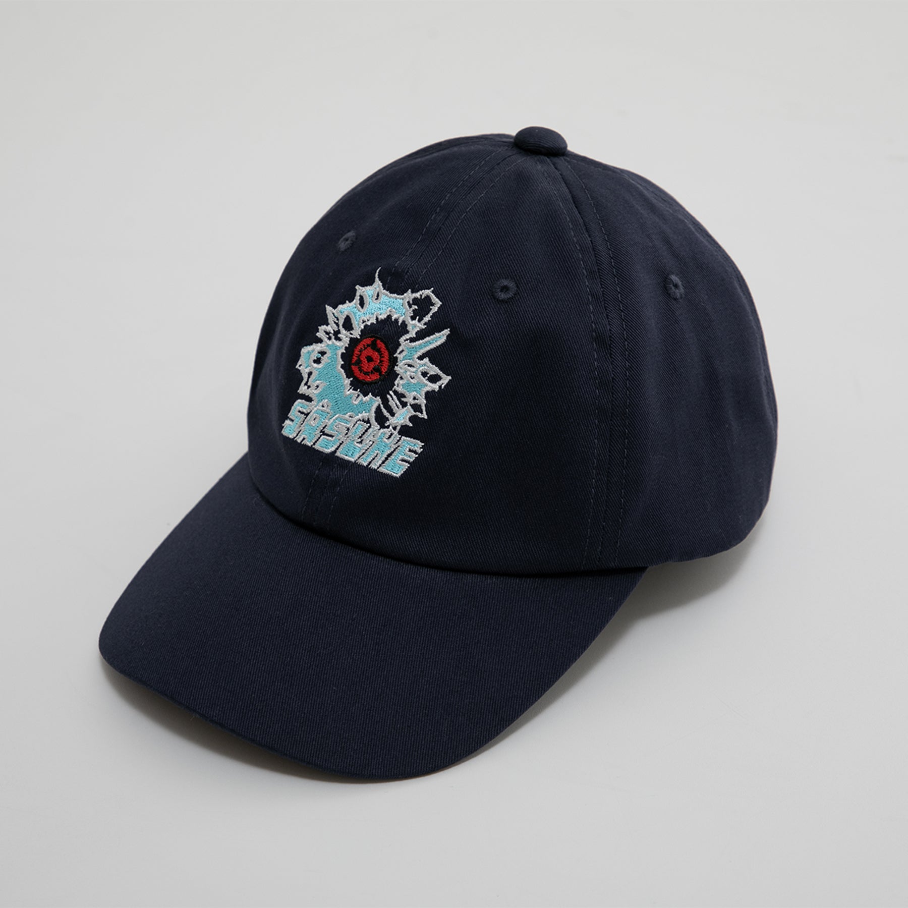 サスケの代表技「千鳥」の稲妻の隙間から写輪眼が覗く、技の発動瞬間をテーマにデザインされたキャップ。形状は一般的な6パネルを採用し、大きめの刺繍がアクセントになっています。