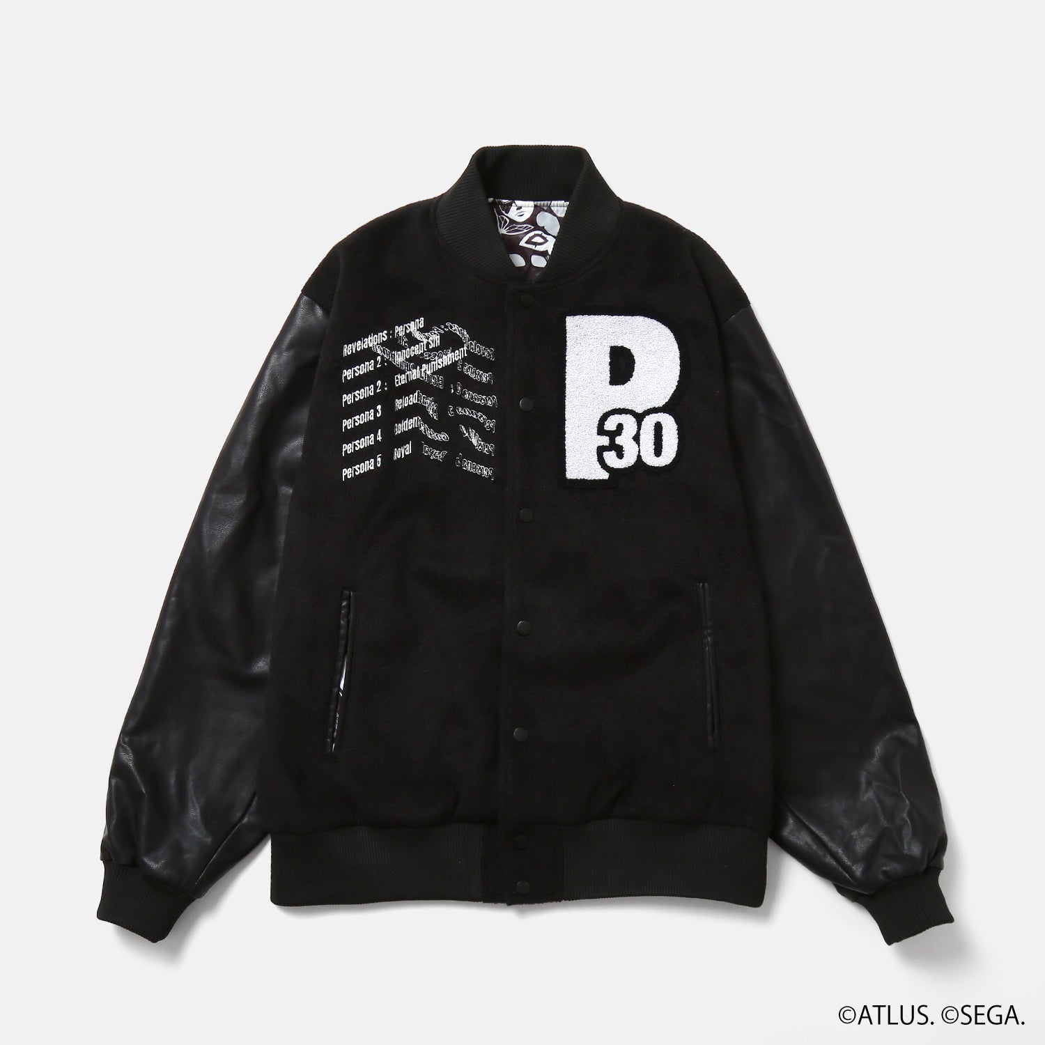 右胸にはシリーズ各タイトルを、左胸には30周年を記念したモチーフをデザインし、ストリートウェアとして常に『ペルソナ』シリーズの世界観を身に纏える一着です。