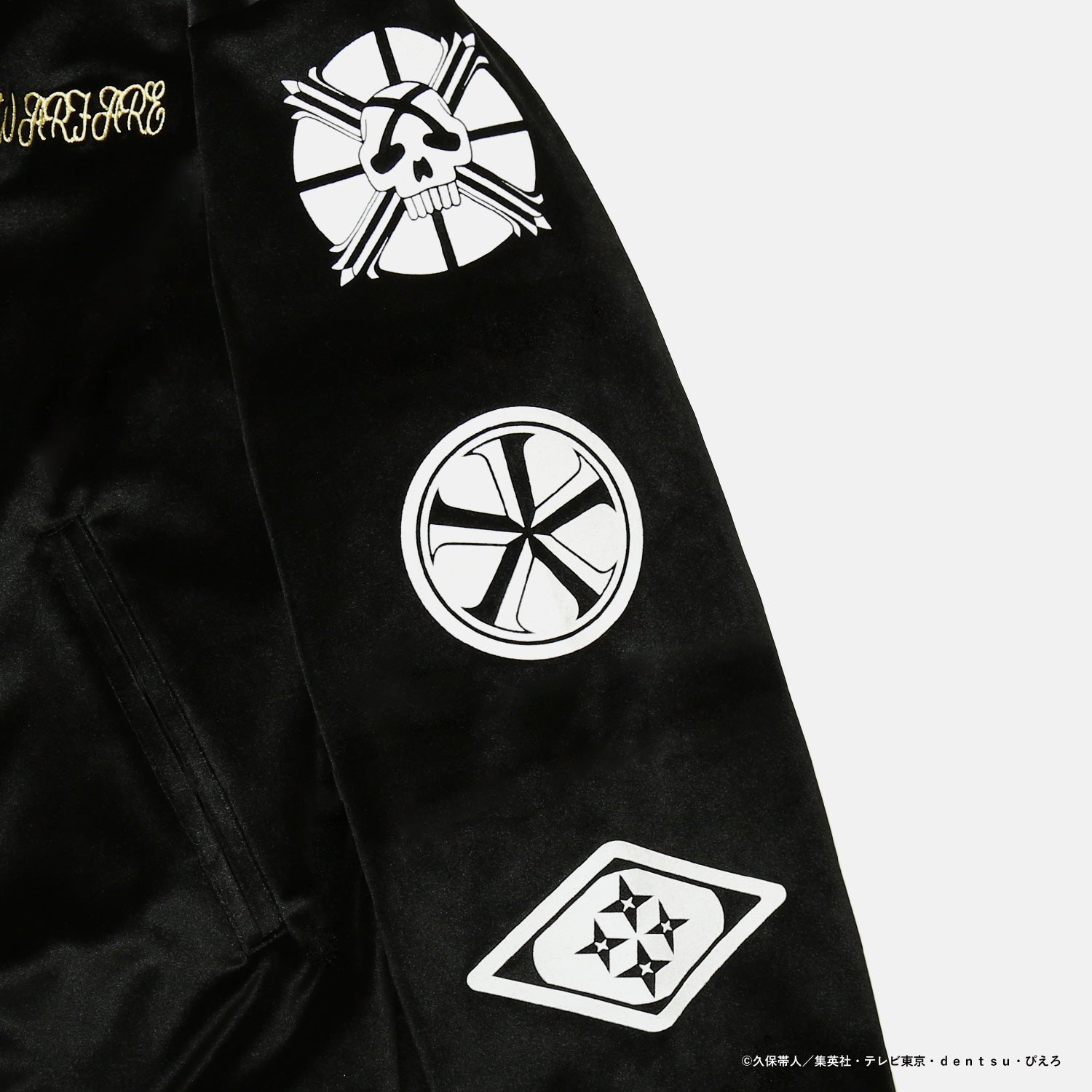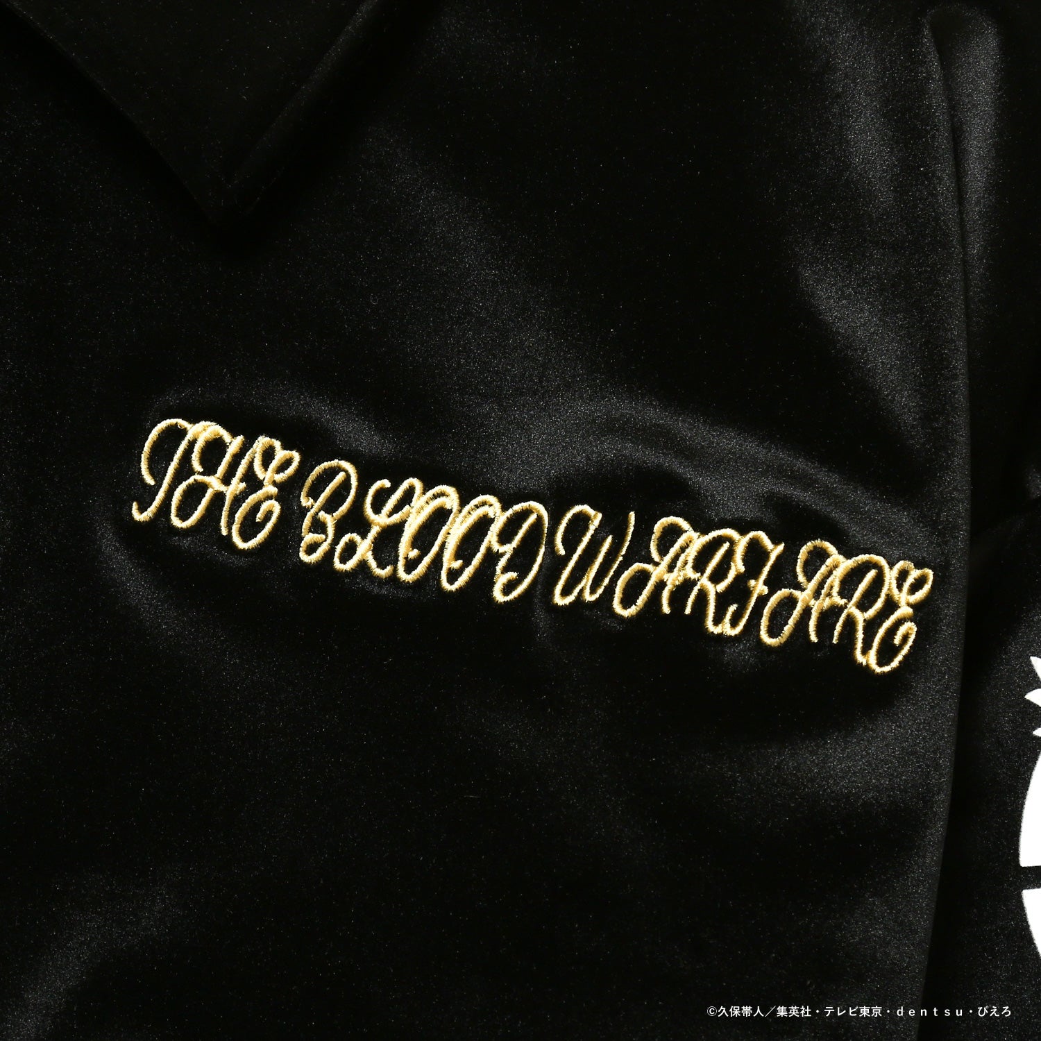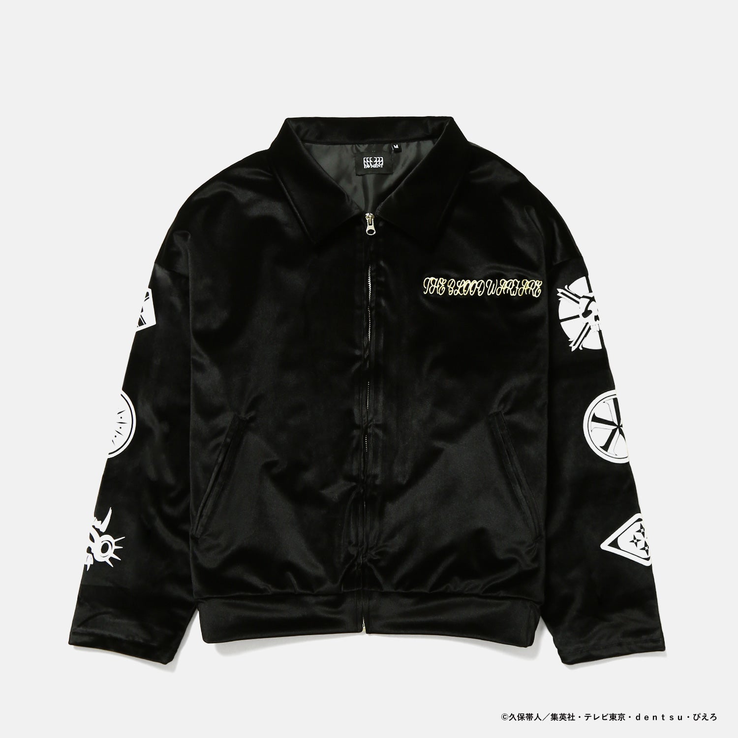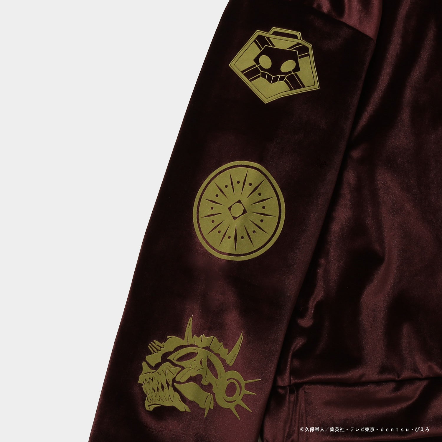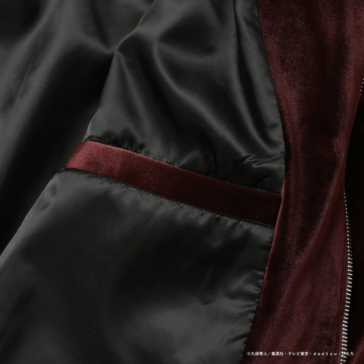 モチーフをあしらったオリジナルデザインのジャケット。上品なベロア素材に、背面のロゴと胸元の刺繍がアクセントを添えます。カラーはブラックとバーガンディの2色展開。