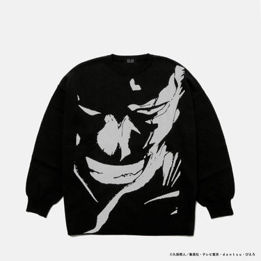 更木剣八をデザインに落とし込んだジャガード織ニットセーター。ゆったりとしたシルエットでユニセックスに着用可能。 TVアニメ『BLEACH 千年血戦篇』の印象的な対決シーンをモノトーンで表現した、迫力あふれる一着です。