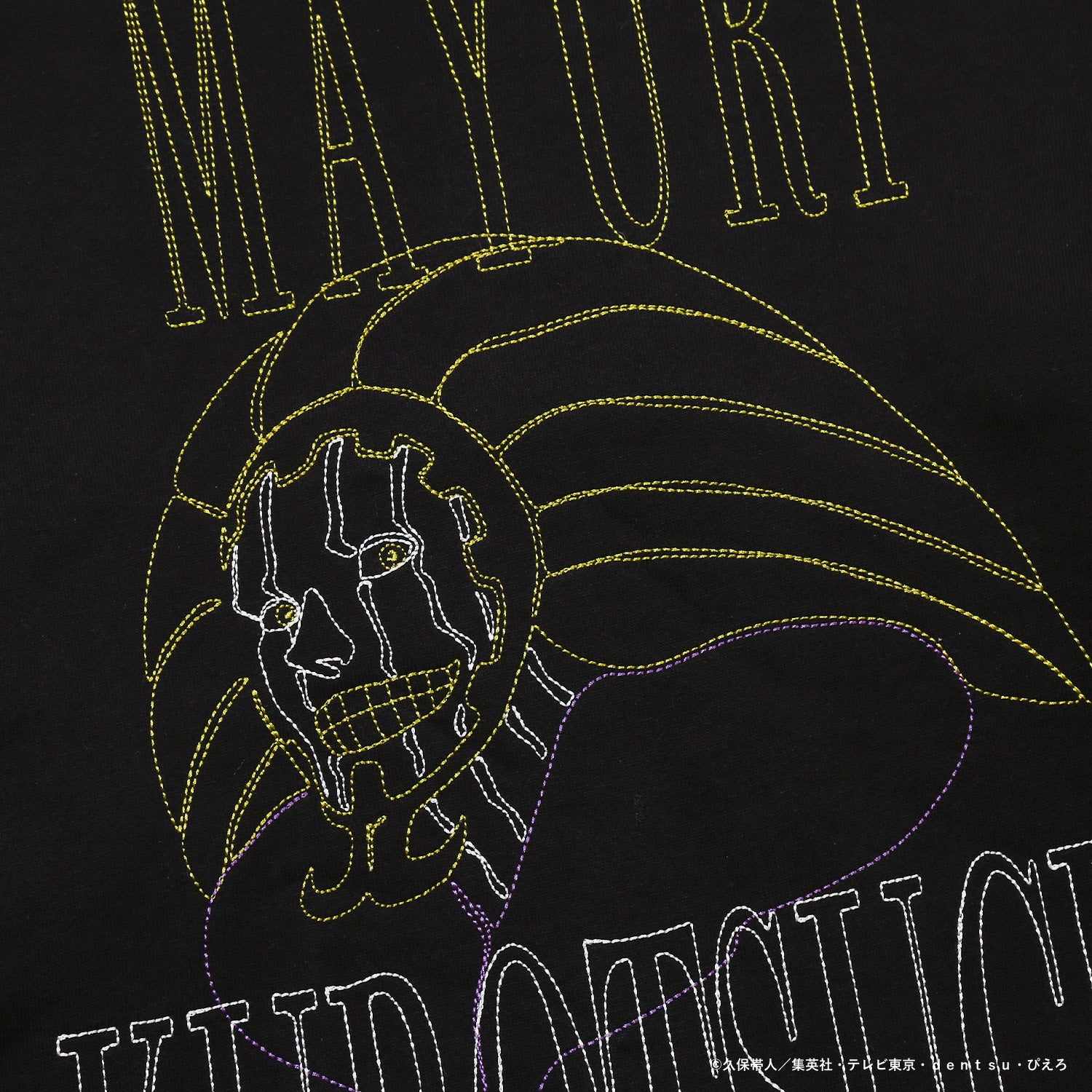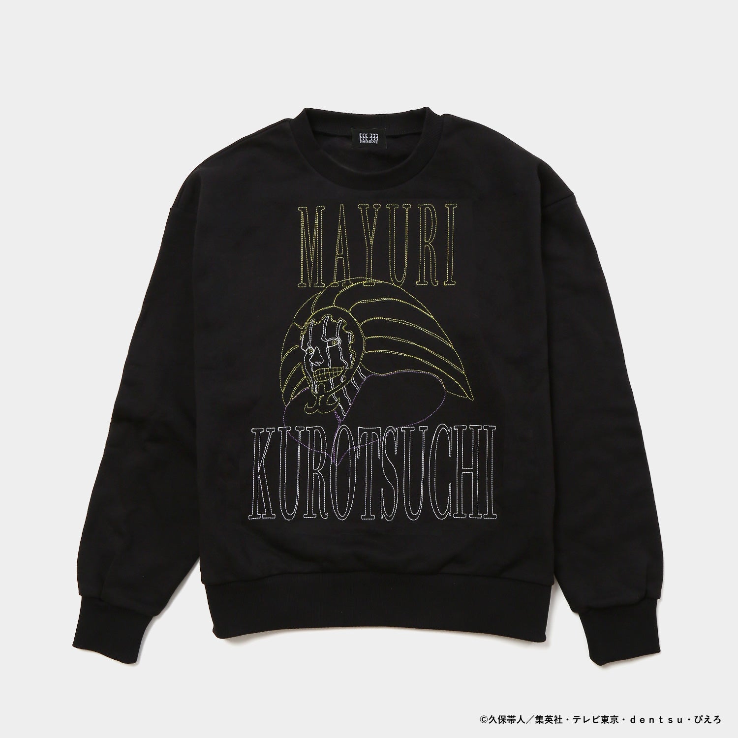 涅マユリをフロントにあしらった線刺繍スウェット。ハンドステッチ風の線刺繍ならではの立体感と表情が特徴。幅広めの本体でルーズな着心地を楽しめる一着です。