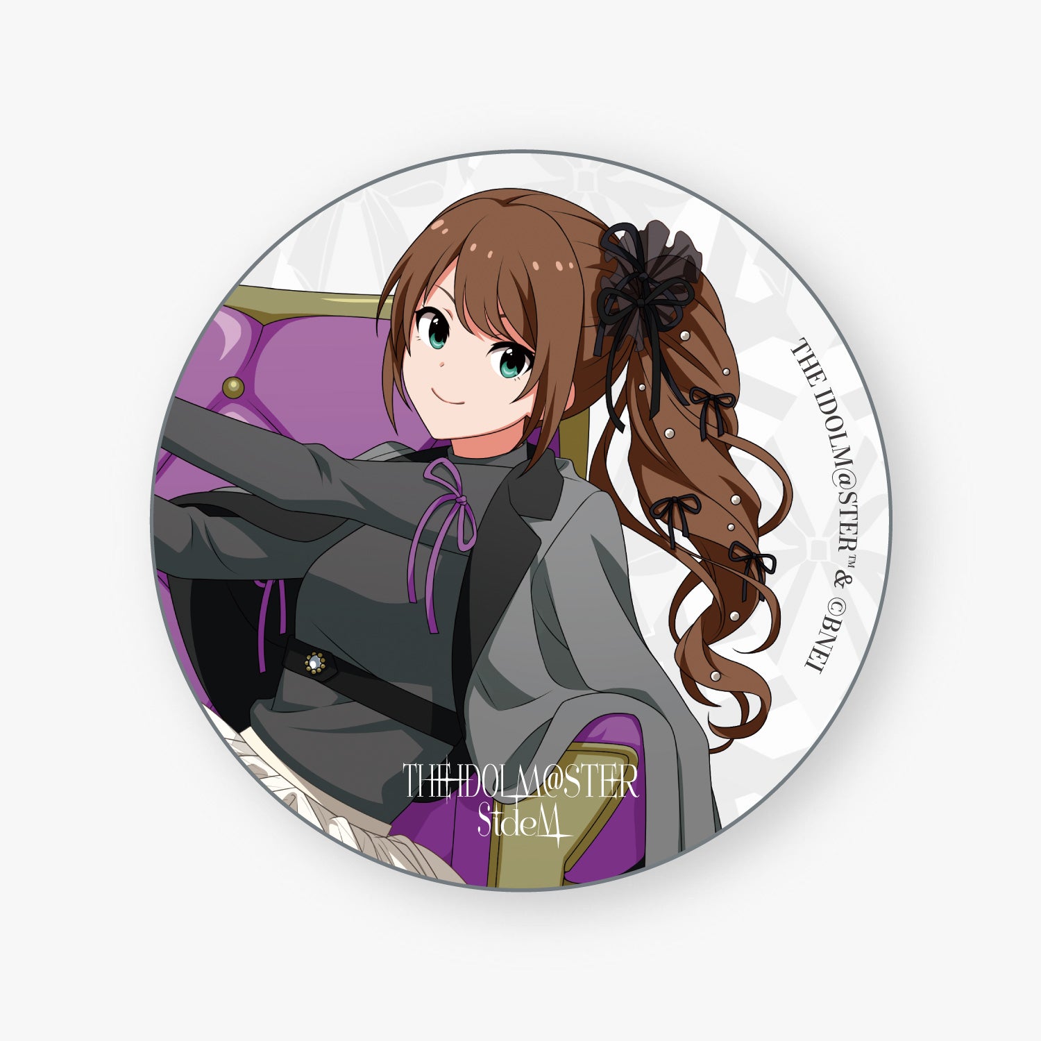 描き下ろしビジュアルを使用した缶バッジ(ランダム12種)。カバンや小物につけたり、お部屋に並べて飾ったり、アイドルとの日常をお楽しみください。