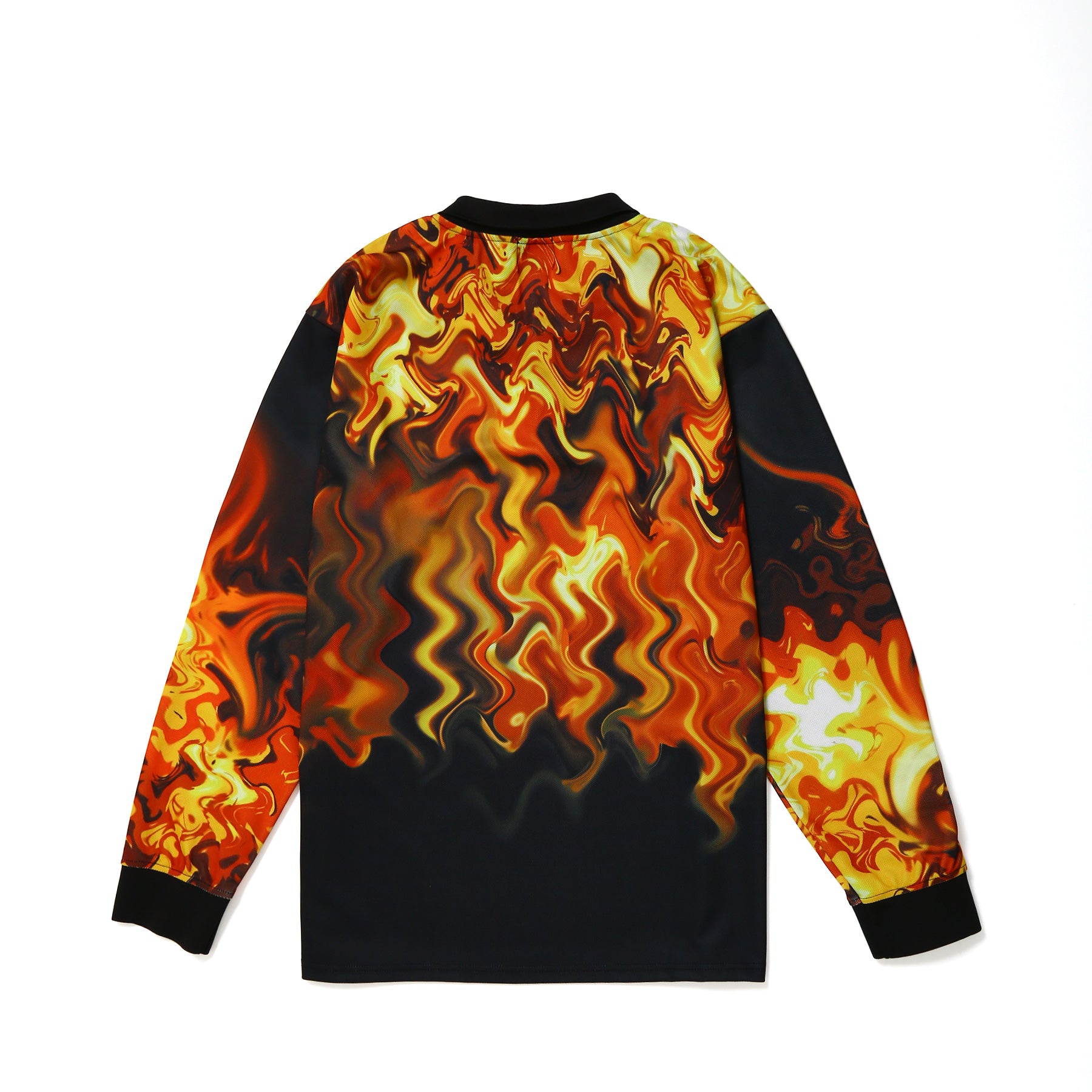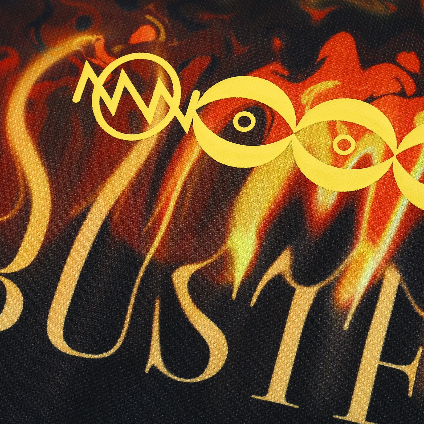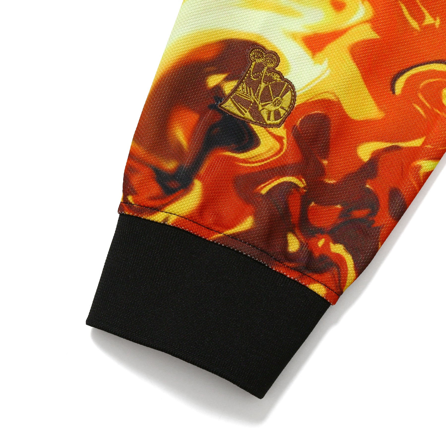 火の手が広がる赤やオレンジのグラデーションが上半身を覆い、 劇中の圧倒的な臨場感をデザインに落とし込みました。