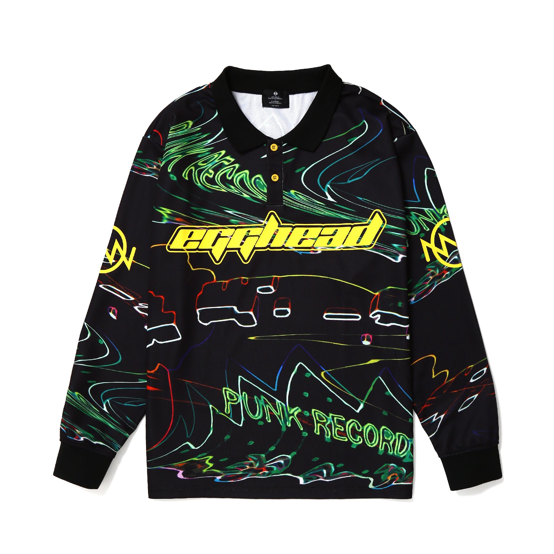 SF感のあるグラフィカルな表現でパンクレコードを再構築し、さまざまなアイテムとコーディネートしやすいフォントで「EGGHEAD」のロゴをあしらいました。